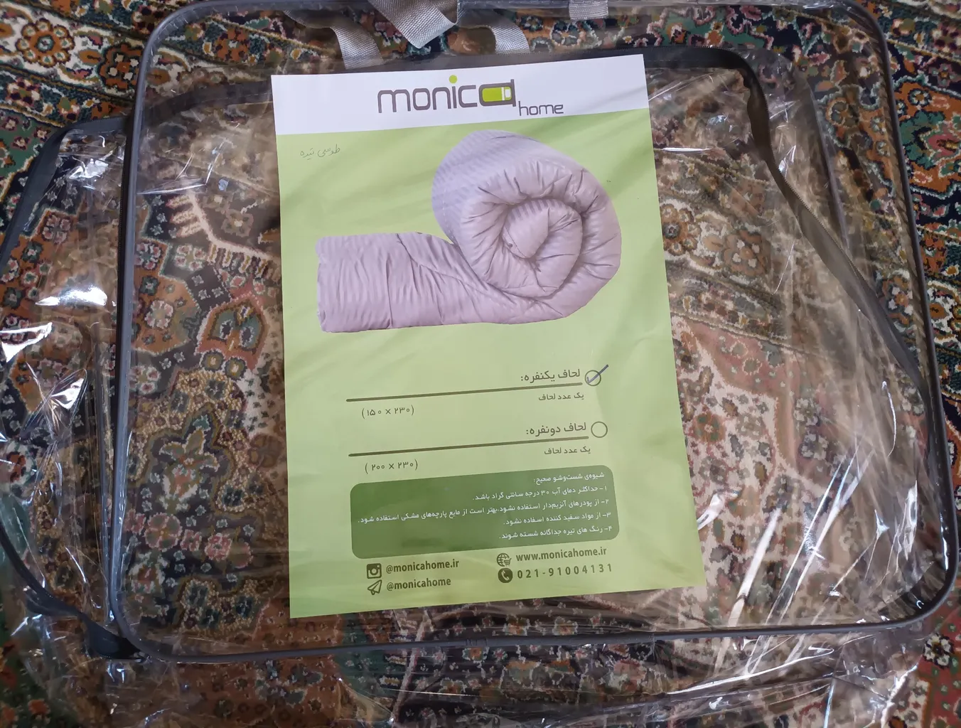 تجربه خرید لحاف برند مانیکاهوم