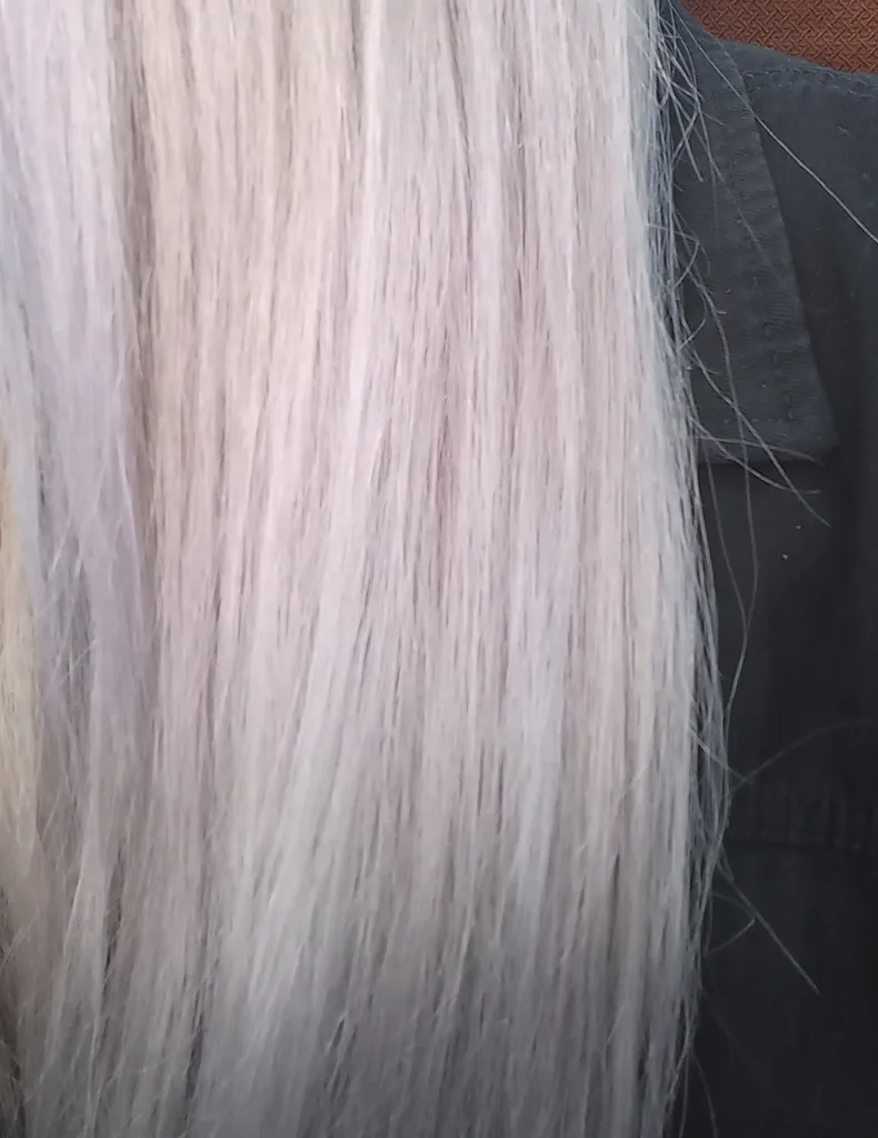 اول تقریبا ده دقیقه شامپو ضد زردی مارالو گذاشتم رو موهای خشکم بعد که شستم و یکم موهام خشک شد متوجه شدم خوب ماساژ ندادم و مابین موهای نقره ایم رگه های دکلرم هست!