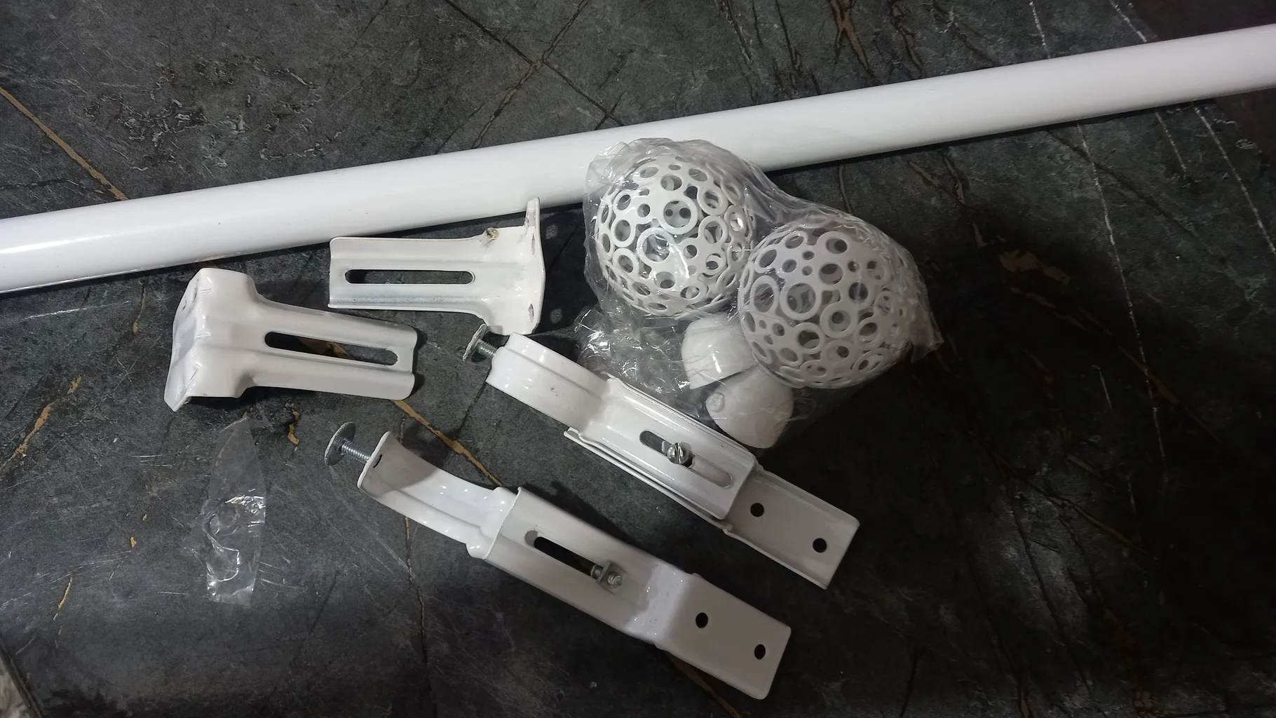 مهدی جعفری : چوب پرده ؛ دوتا پایه دیواری و دوتا سقفی به همراه خود میل پرده و دوتا قپه های کناری برای من ارسال شد اما متاسفانه یکی از قپه ها فرو رفتگی و شکستگی داره احتمالا موقع بسته بندی یا حمل و نقل آسیب دیده ؛ دوتا قپه جنس خیلی ظریف و شکننده دارن
