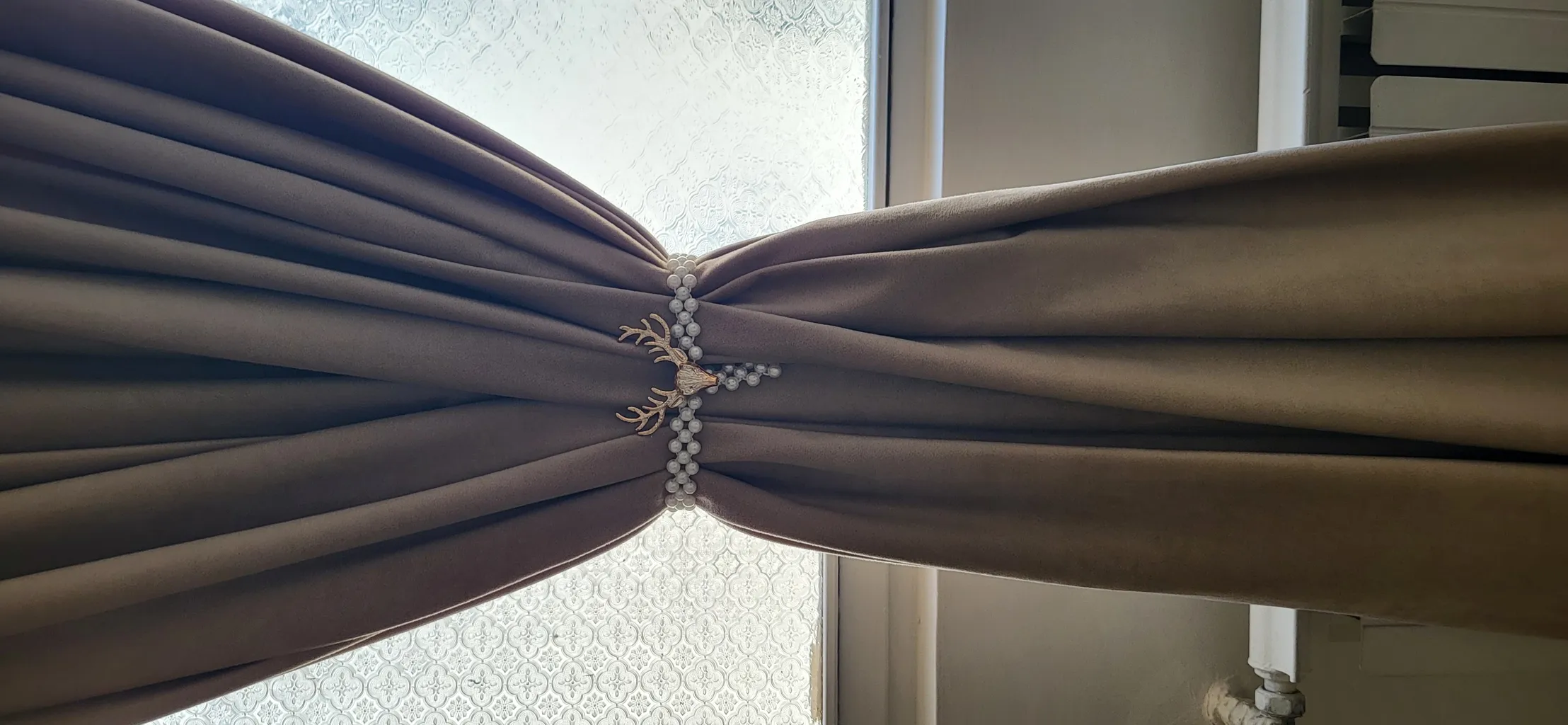 عالی عالی. اینقدر قشنگ و خوشگل شد روی والون پرده م که از دیدنش سیر نمیشم. اولش برای سفارش کمی دو دل بودم ولی الان کاملا راضیم.هم رنگش عالیه هم با کیفیته هم اندازه بود هم نگین داره و خیلی خوشگله