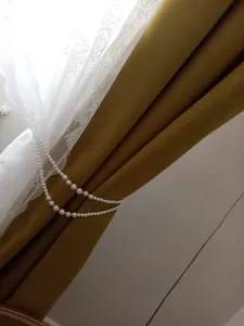 خیلی قشنگه ولی وقتی دیدمش شوکه شدم انقد کوچولو بود.. و اینکه انقد بندای مرواریدیش کوتاهه که مجبور شدم دوتاشو به هم وصل کنم تا بتونم به یه پرده ببندمش