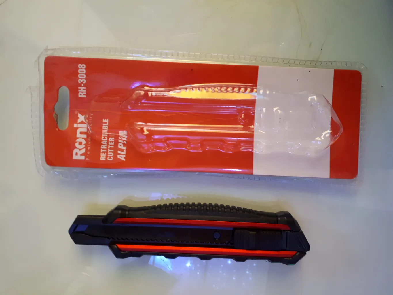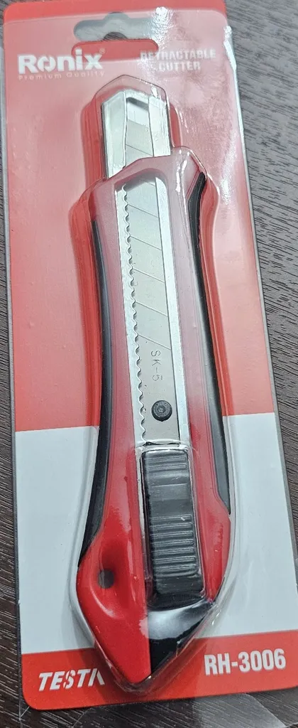 Ronix 3009RH ؛ سلام بعد شش روز استفاده میتونم بگم کاتری هستش که میتونید تو کارهای سنگین روش حساب باز کنید چون بدنه ای با استحکام بالا داره که هیچ جوره کم نمیاره از نظر من همچین کیفیت و قیمتی برای یک محصول ایرانی-چینی خوبه،1403/5/14 من این محصول رو با قیمت 240.000 تومان تهیه کردم که بنظرم کاملا می ارزه، اصلا قابل مقایسه با برند های دیوالت . میلواکی . بوش نیستش و با اون ها مقایسش نکنید چون هم قیمت اون ها نیستش. موقع خریدن تیغ یدک حتما به سایز تیغ توجه کنید چون تیغ های موجود تو بازار دوسایز دارن که سایز 0.6*1.9*6 به کاتر رونیکس میخوره پس تیغ 0.6*1.9*6.1 براش تهیه نکنید همونطور که توی فیلم نشون دادم همون یک دهم اختلاف باعث میشه تیغ توی جای خودش قفل نشه و کار نده.