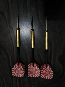 - ⬤ دارت یدک : دارتهای یدک معمولاً از مواد با کیفیتی مانند تنگستن یا برنج ساخته میشوند که به آنها وزن و تعادل مناسبی میدهد. خریداران به تیز بودن نوک دارت و کیفیت ساخت آنها اشاره میکنند و بسیاری از آنها از دقت و تعادل این دارتها راضی هستند. برخی کاربران به این نکته اشاره کردهاند که دارتهای سبکتر برای تازهکارها مناسبتر هستند، در حالی که دارتهای سنگینتر برای بازیکنان حرفهای بهتر عمل میکنند. با این حال، برخی از خریداران به زود شکسته شدن یا جدا شدن پرها از بدنه دارت انتقاد دارند که میتواند تجربه بازی را تحت تأثیر قرار دهد.
