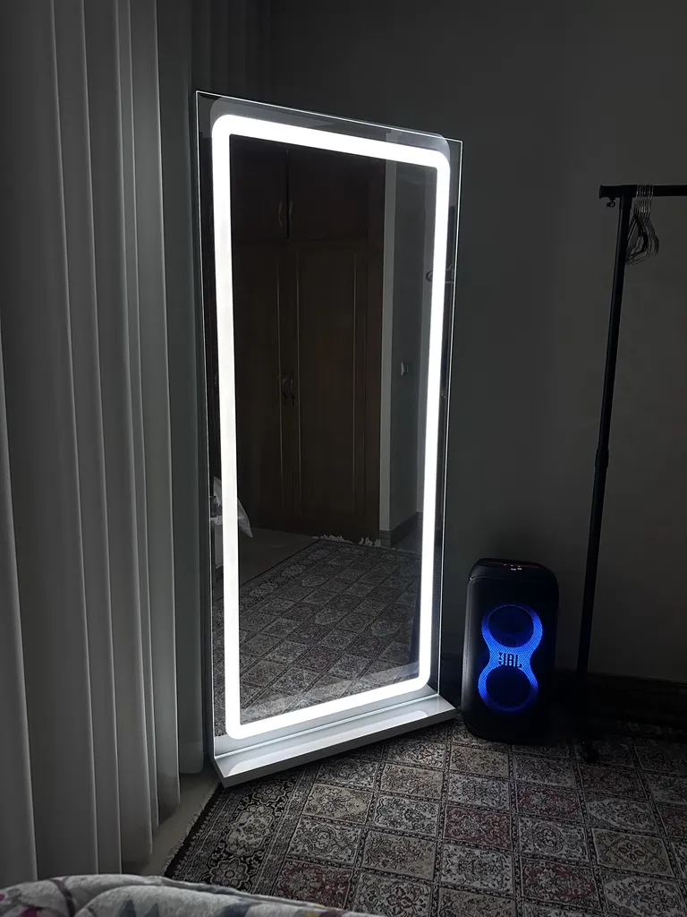 - ⬤ آینه LED : این نوع آینهها با نورپردازی LED طراحی شدهاند و به عنوان یک عنصر مدرن در دکوراسیون داخلی شناخته میشوند. خریداران از نور مناسب و زیبایی این آینهها راضی هستند. اما برخی مشتریان به قیمت بالای آنها و نیاز به منبع برق برای استفاده از نور LED انتقاد کردهاند.
