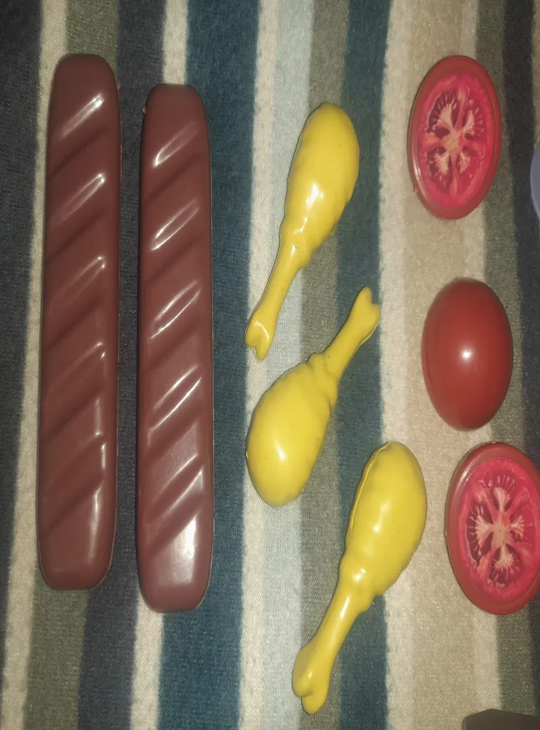 اسباب بازی خوب و باکیفیتی هست و ۴ تا سیخ خاکستری و ۲ کباب قهوه ای و ۳ مرغ با استخوان خردلی رنگ و ۳تا گوجه ی ار وسط نصف شده و خود منقل و یک بادبزن داره اما رنگ منقل و باد بزن شبیه هم نیست که باهم مچ بشن من رنگ سرمه ای انتخواب کردم و بادبزن رنگ بنفش روشن رو فرستادن اما من راضی ام،زیر هر کباب یا گوجه کلا چیز هایی که روی مقل قرار میگیره ۲ تا جا برای رد کرد سیخ از اون داره و خلاصه دختر نن ازش خوشش اومد ممنون از دیجی کالا.و اینکه این اسباب بازی زینتی نیست از نظر. من حالا اینکه چرا نوشتن کباب پز زینتی خدا میدونع