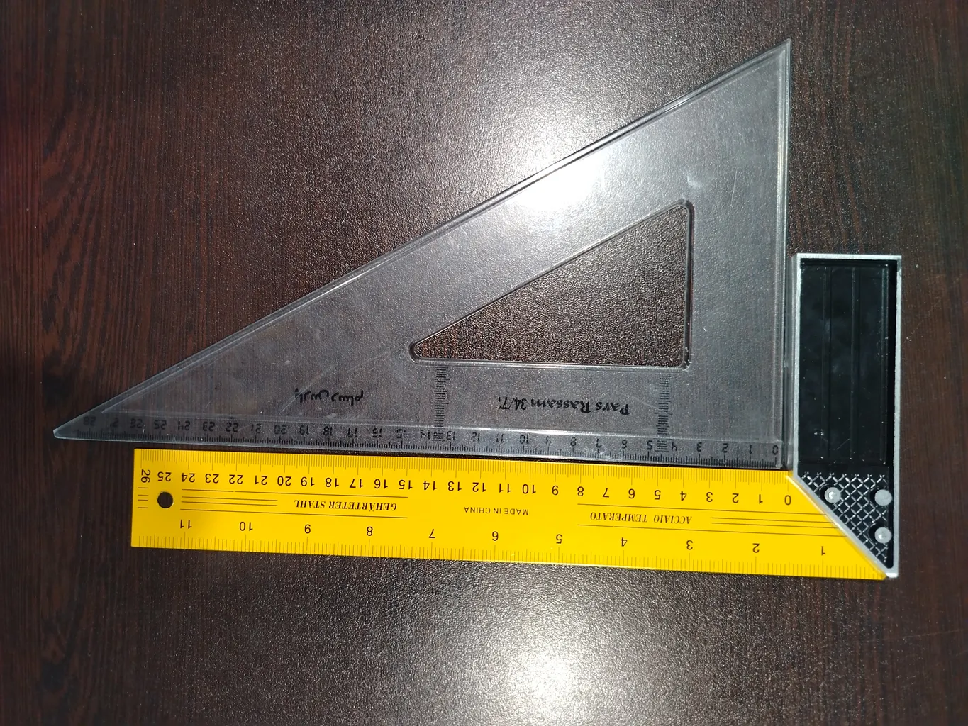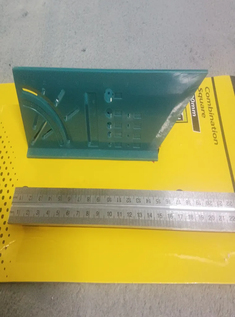 - ⬤ خطکش گونیا : این لوازم جانبی به گونیاها کمک میکند تا اندازهگیریهای دقیقتری انجام دهند. خریداران از دقت و کیفیت ساخت خطکشها راضی هستند و به وضوح اعداد و مقیاسهای حک شده بر روی آنها اشاره میکنند. بسیاری از کاربران به این نکته تأکید کردهاند که خطکشها به راحتی قابل استفاده هستند و به کارایی گونیاها افزودهاند. اما برخی از خریداران از آسیبپذیری خطکشها در برابر ضربه و عدم دقت در برخی مدلها شکایت دارند.