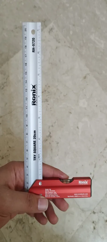 - ⬤ قابلیت تراز : وجود تراز در گونیا به دقت کار کمک میکند و خریداران از گونیاهایی که این ویژگی را دارند، راضی هستند. این قابلیت به کارایی گونیا میافزاید و کاربر را در انجام پروژههای مختلف یاری میکند. تراز بودن گونیا به جلوگیری از خطاهای اندازهگیری کمک میکند.