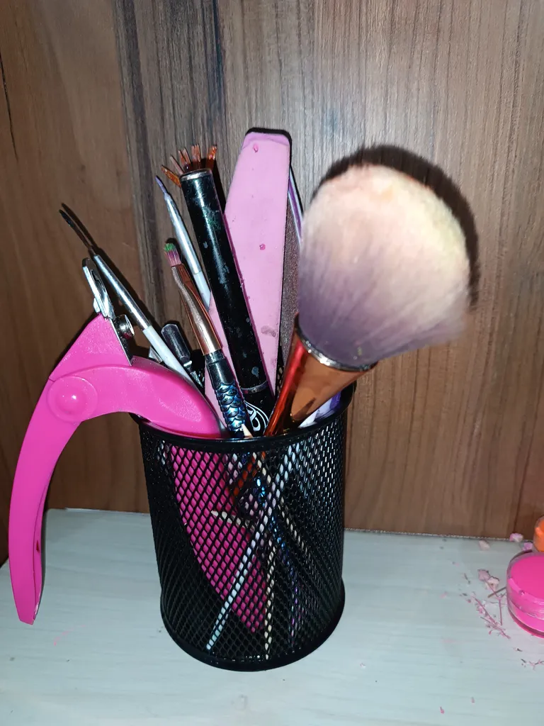 جامدادی رو میزی ؛ من خوشم اومد و از این کار سطل زبالش هم دارم و مقدار جاگیریش هم توی عکس براتون گزاشتم ولی یک ایرادی که داره اینه که آهنش ضعیفه و از پشت هم با یه تیکه مس جوش خورده که رنگش فرق می کنه و عکسشو براتون میزارم