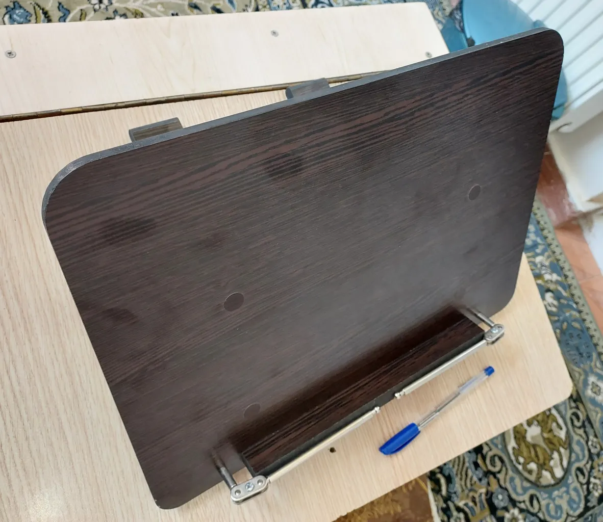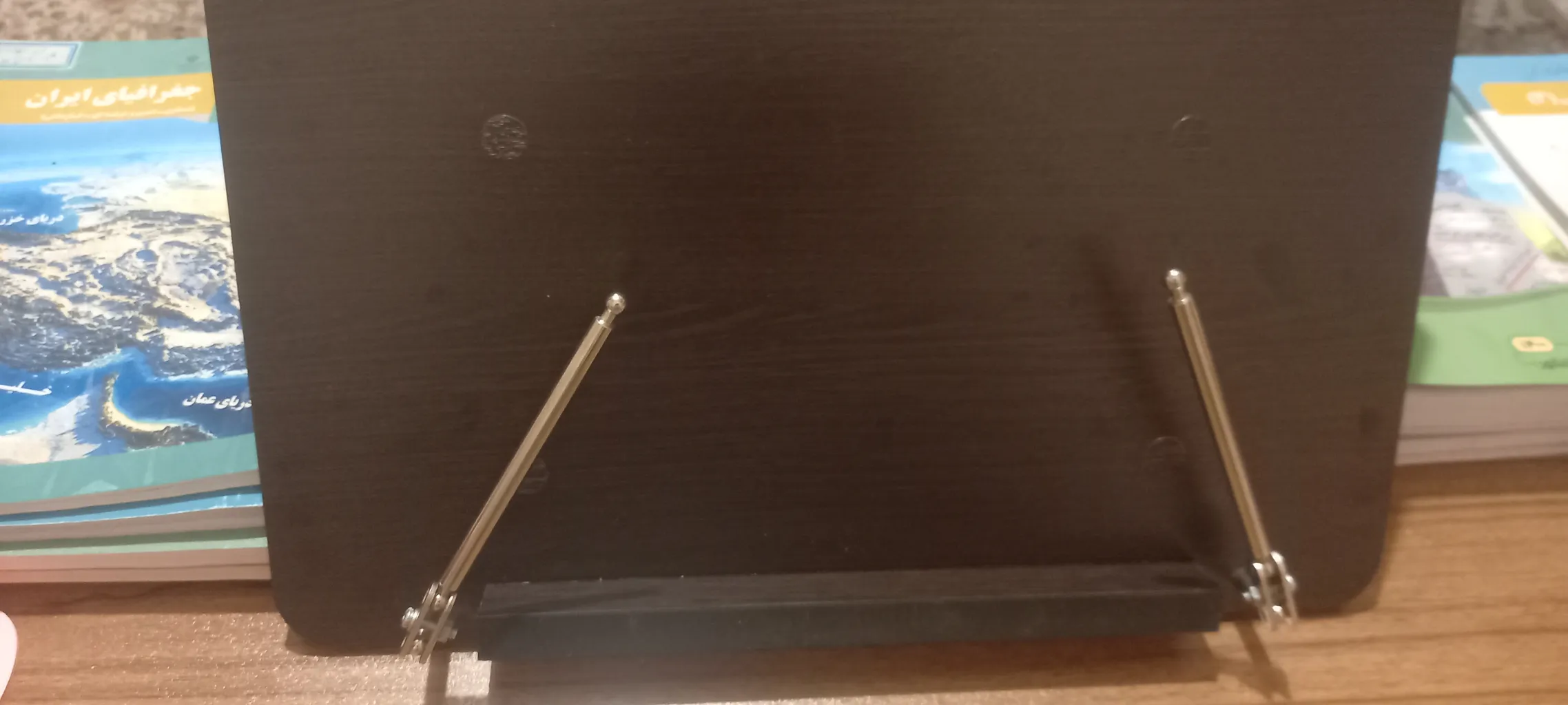 البته من چند تا کتاب زیرش گذاشتم که بالاتر بیاد و کتاب خوندن باهاش بازم راحت تر بشه! یعنی من اگه نمونه اش تو فروشگاه های کتاب دیده بودم زودتر از اینها خرید می کردم!