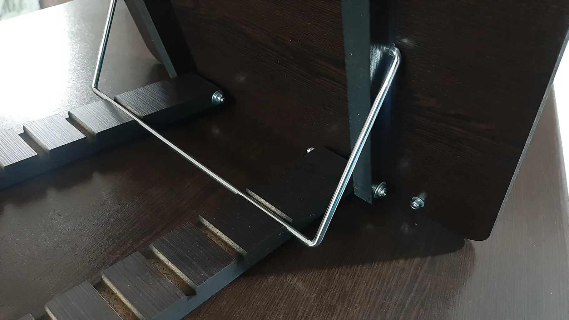 کیفیت عالی ؛ به عنوان یک نگهدارنده کتاب، بهترین انتخاب شماست، کیفیت خود ام دی اف و قطعات آهنی خیلی خوب هست و واقعا عالی هستن، نگهدارنده های پشت چوب، در چند حالت متصل میشن و باعث میشه بتونید کتاب رو تو هر زاویه ای قرار بدهید، و این مزیت خیلی خوبیه، در پایان میشه خود نگهدارنده رو جمع کرد و حجمش رو کم کرد که برای جابجایی خیلی گزینه خوبیه، یکم وزنش زیاده که خب طبیعیه نسبت به متریال چوبی درونش، اتصال های جلویی هم که صفحات کتاب رو نگه میدارند، فوق العاده دقیق و مناسب هستن، اول کار یکم سفت به نظر میان، بعد از سه چهار روز استفاده از حالت سفتی در میان و مناسب میشن و خیلی راحت کاغذ ها و صفحات کتاب رو نگه میدارند، در کل یک جنس ایرانی فوق العاده است
