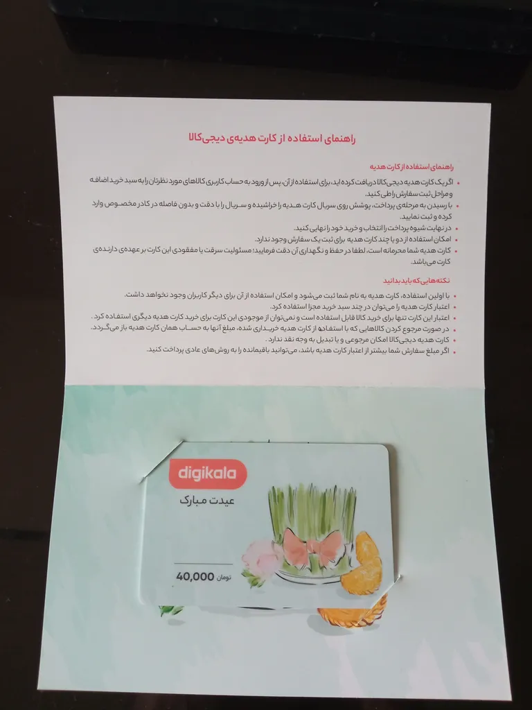 نظر و تجربه خرید کارت هدیه دیجی کالا به ارزش 10.000.000 تومان طرح گلدر تاریخ ۰۵ اردیبهشت ۱۴۰۳