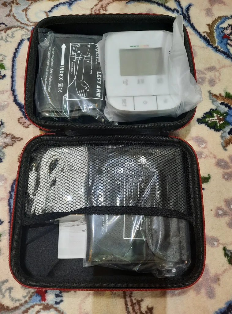 - ⬤ کیف نگهداری : کیف نگهداری فشارسنج به کاربران کمک میکند تا دستگاه و لوازم جانبی آن را به راحتی حمل و نگهداری کنند. خریداران به کیفیت و طراحی کیفها توجه دارند و بسیاری از آنها از کیفهای محکم و زیبا که فضای کافی برای نگهداری کاف و آداپتور دارند، راضی هستند. برخی کاربران به کیفیت پایین کیفهای ارائه شده در برخی مدلها اشاره کردهاند و این موضوع میتواند بر تجربه کاربری تأثیر منفی بگذارد.