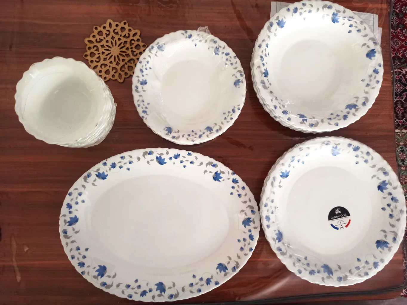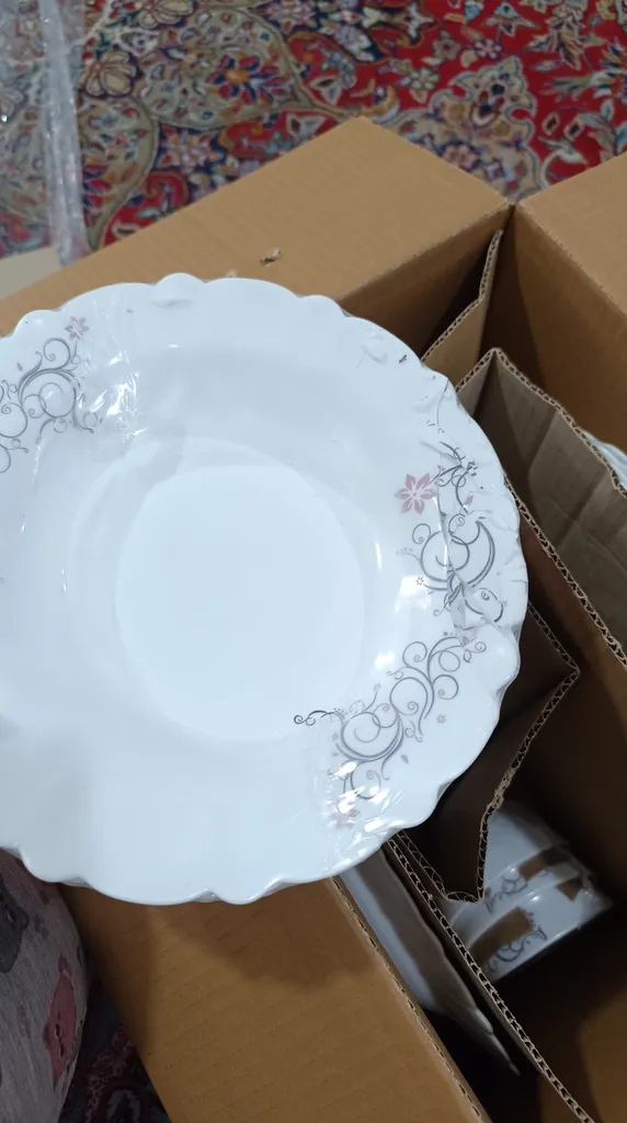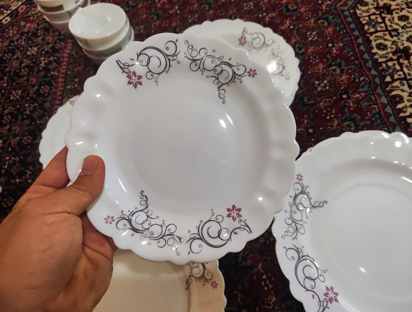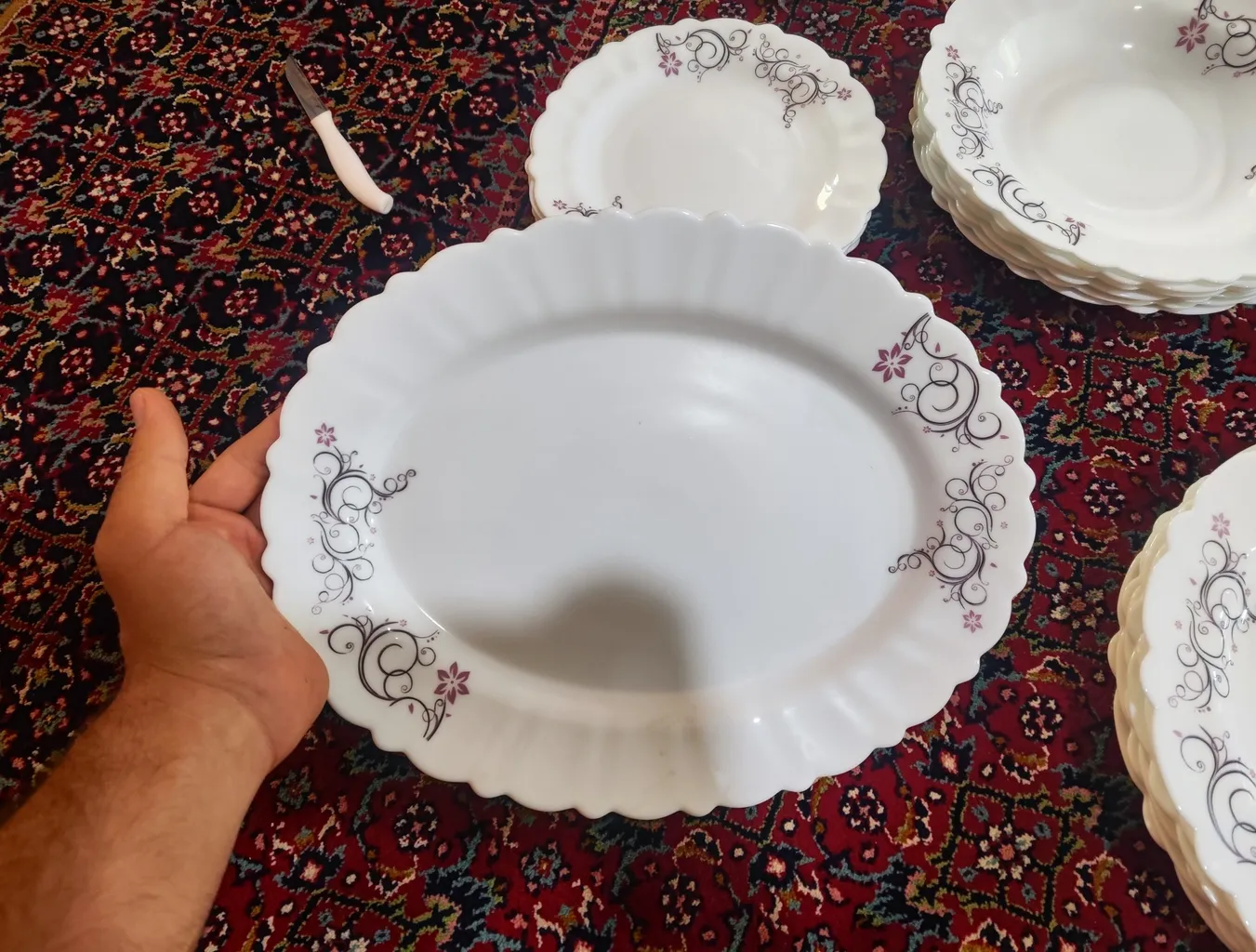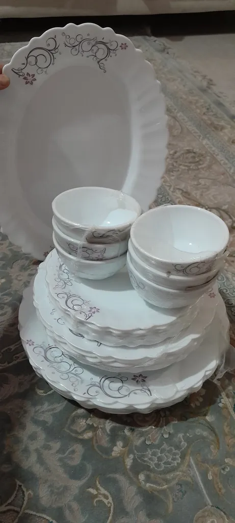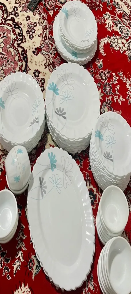 - ⬤ سرویس بشقاب : این اقلام شامل بشقابهای بزرگ و کوچک برای سرو غذا هستند. خریداران به طراحی زیبا و کیفیت بالای این بشقابها اشاره کرده و از آنها برای سرو انواع غذاها استفاده میکنند. اما برخی از آنها به مشکل در شکستن این بشقابها به دلیل نازکی انتقاد کرده و خواستار مواد با کیفیتتر شدهاند.