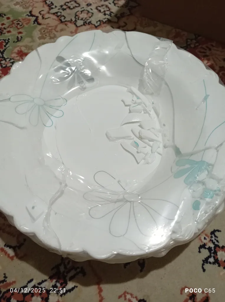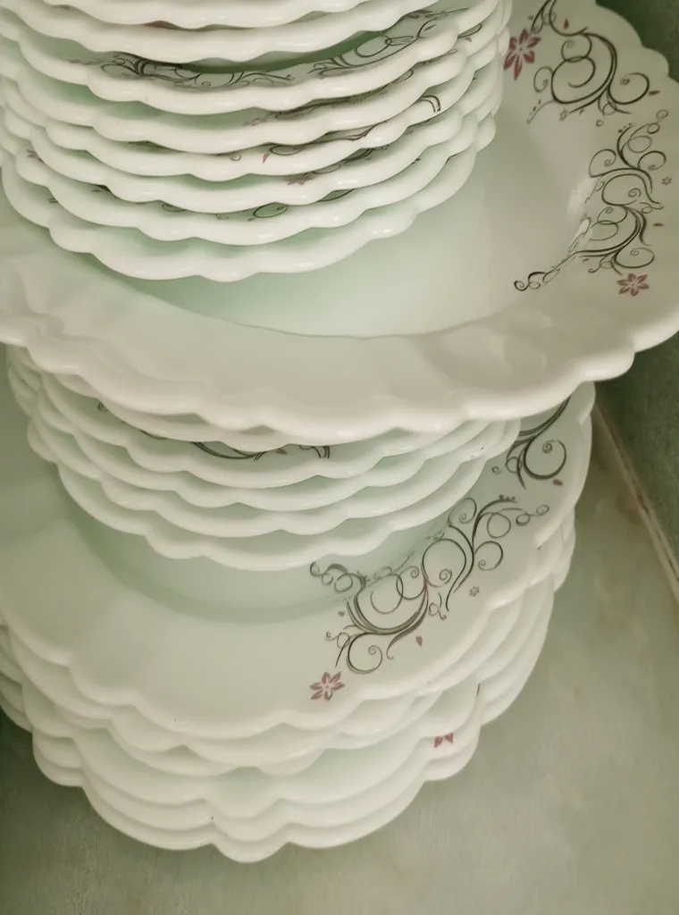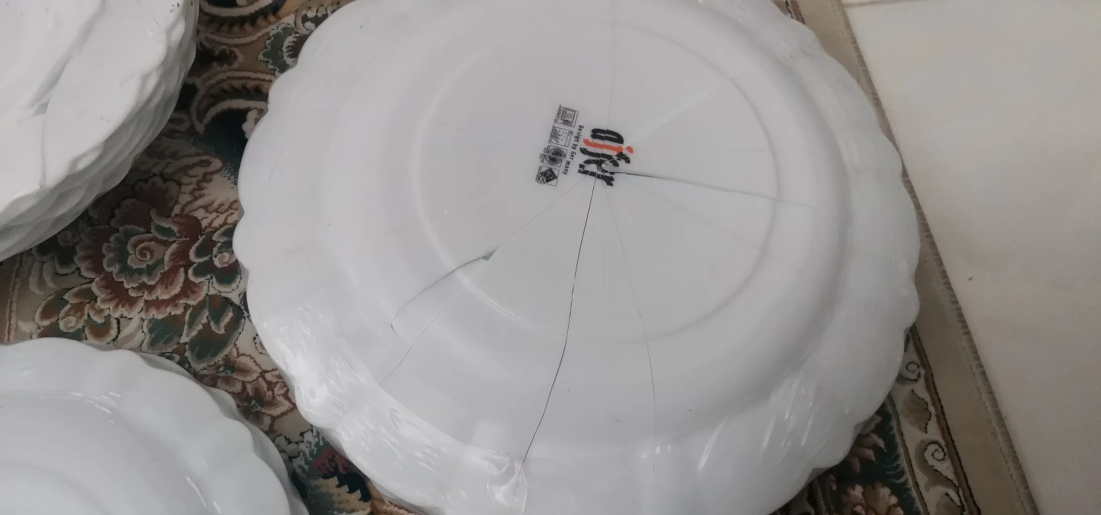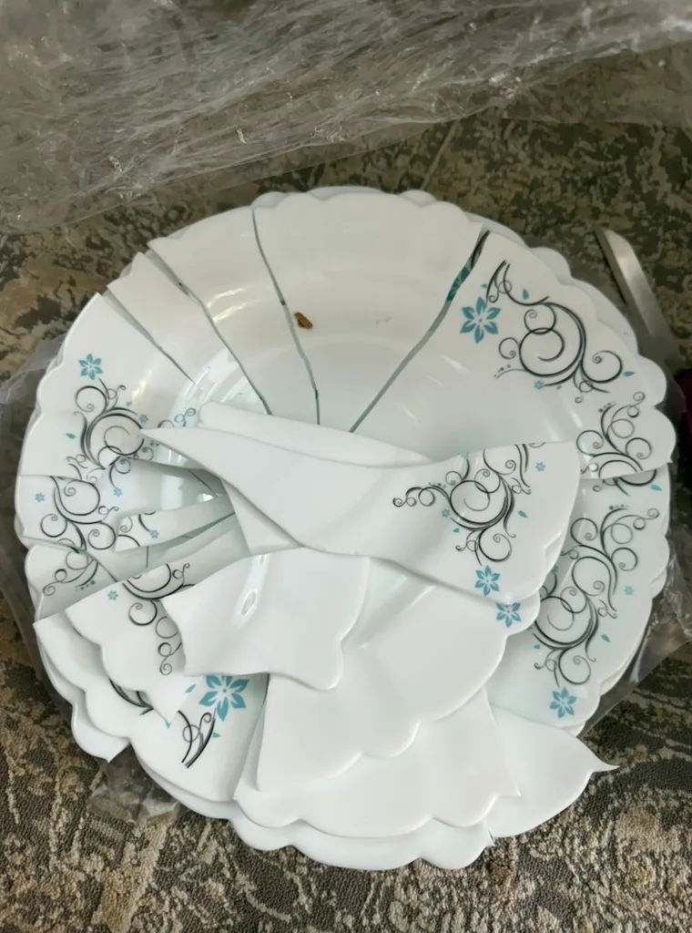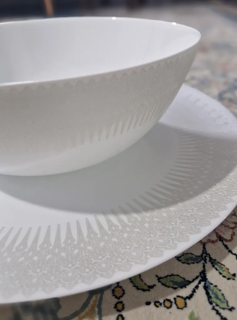 - ⬤ سرویس بشقاب : این اقلام شامل بشقابهای بزرگ و کوچک برای سرو غذا هستند. خریداران به طراحی زیبا و کیفیت بالای این بشقابها اشاره کرده و از آنها برای سرو انواع غذاها استفاده میکنند. اما برخی از آنها به مشکل در شکستن این بشقابها به دلیل نازکی انتقاد کرده و خواستار مواد با کیفیتتر شدهاند.