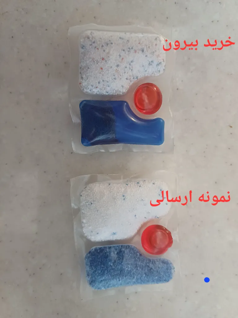 متاسفانه جنس نامرغوب ارسال شده ، بجای ژل جلادهنده پودر اضافه کردن. وزن هر قرص حدود ۲ تا ۳ گرم کمتر از نمونه اصلیه . کیفیت شستشوی خوبی هم در ماشبن بوش نداره . در کل ارزش خرید نداره