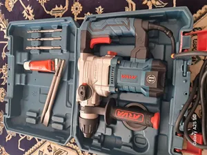 - ⬤ دریل چکشی : دریلهای چکشی برای سوراخکاری در مصالح سخت مانند بتن و آجر طراحی شدهاند. خریداران باید به قدرت موتور و میزان ضربه (ژول) توجه کنند، زیرا این عوامل تأثیر زیادی بر روی کارایی دریل دارند. همچنین، وجود حالت چکشی و نرمال برای کارهای مختلف میتواند مزیت محسوب شود.