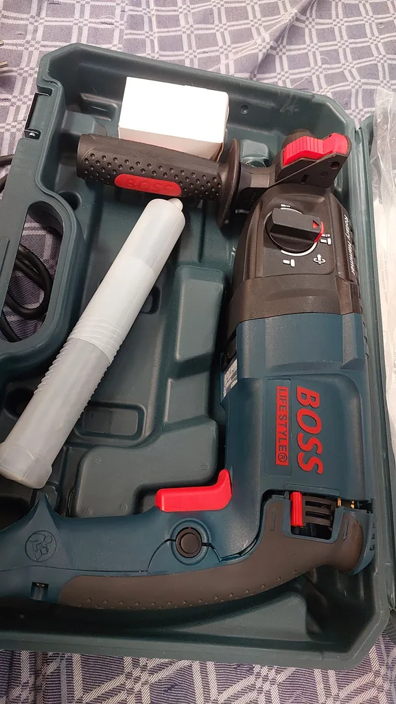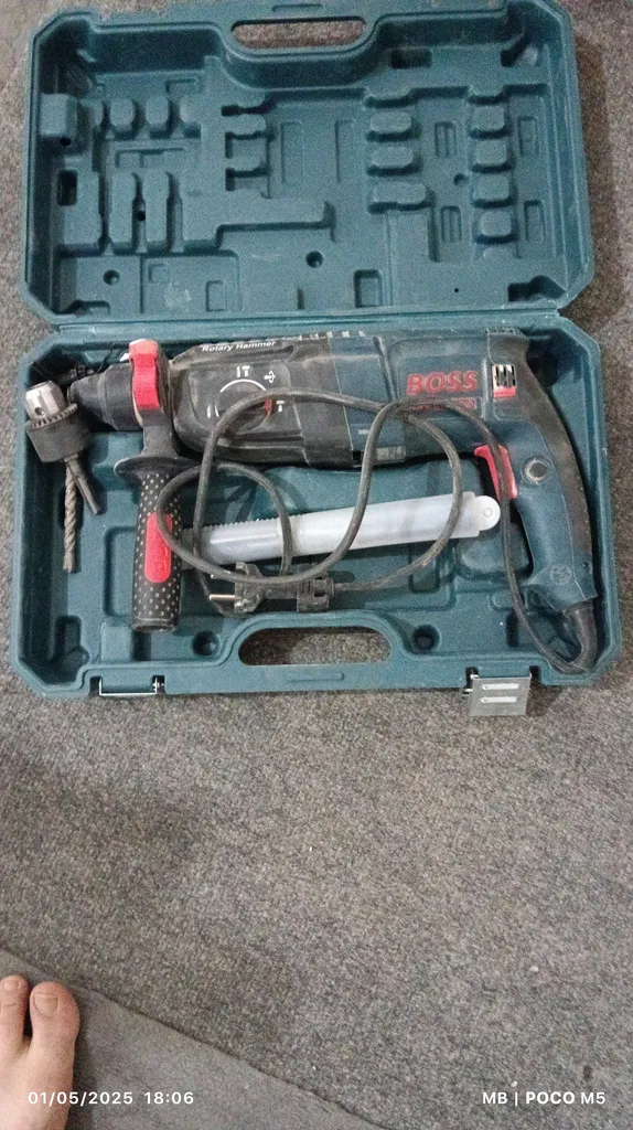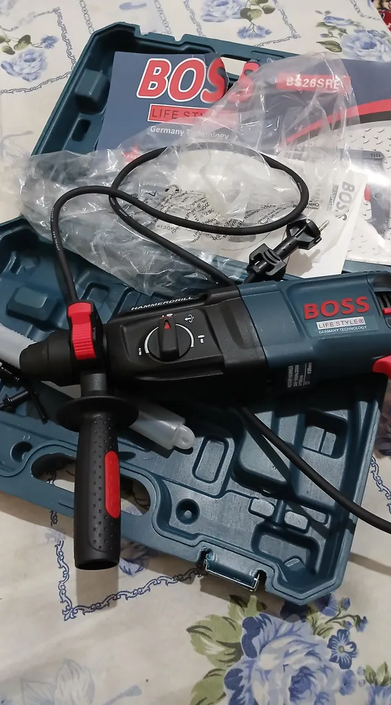 - ⬤ دریل چکشی : دریلهای چکشی برای سوراخکاری در مصالح سخت مانند بتن و آجر طراحی شدهاند. خریداران باید به قدرت موتور و میزان ضربه (ژول) توجه کنند، زیرا این عوامل تأثیر زیادی بر روی کارایی دریل دارند. همچنین، وجود حالت چکشی و نرمال برای کارهای مختلف میتواند مزیت محسوب شود.