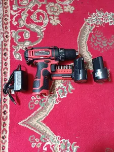 ⬤ دریل شارژی : این نوع دریلها به دلیل عدم نیاز به کابل برق، بسیار کاربردی هستند. خریداران باید به نوع باتری (لیتیوم-یونی یا نیکل-کادمیوم) و مدت زمان شارژ آن توجه کنند. همچنین، عمر باتری و قابلیت تعویض آن نیز از نکات مهم است. وجود چراغ LED برای کار در مکانهای تاریک میتواند مزیت دیگری باشد.