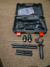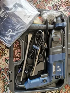 - ⬤ دریل چکشی : دریلهای چکشی برای سوراخکاری در مصالح سخت مانند بتن و آجر طراحی شدهاند. خریداران باید به قدرت موتور و میزان ضربه (ژول) توجه کنند، زیرا این عوامل تأثیر زیادی بر روی کارایی دریل دارند. همچنین، وجود حالت چکشی و نرمال برای کارهای مختلف میتواند مزیت محسوب شود.