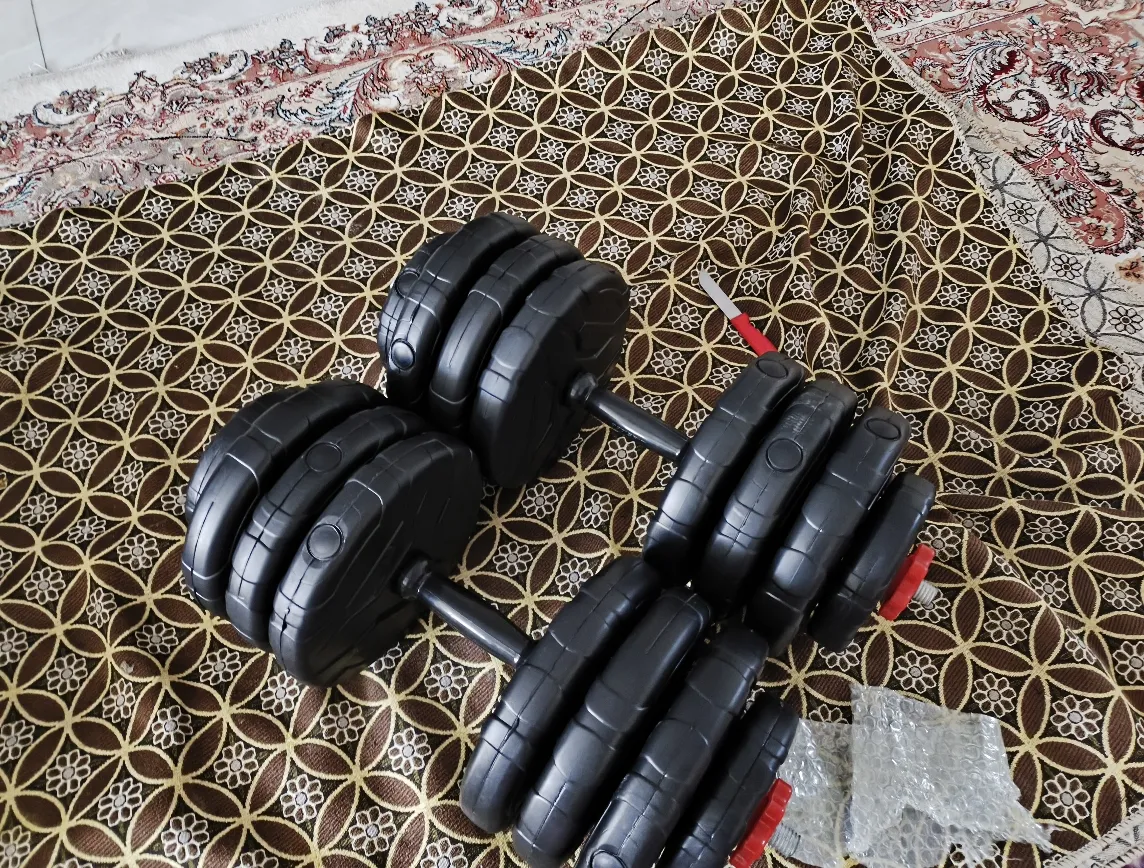 - ⬤ دمبلهای پلاستیکی : این دمبلها معمولاً با روکش پلاستیکی پوشیده شدهاند و برای تمرینات سبک و خانگی مناسب هستند. خریداران به این نوع دمبلها به عنوان ابزاری ارزان و قابل دسترس اشاره کردهاند. این دمبلها به راحتی قابل حمل و استفاده هستند، اما معایب آنها شامل عدم دوام و کیفیت پایین در مقایسه با دمبلهای فلزی است. برخی خریداران به بوی نامطبوع و آسیبپذیری روکش پلاستیکی در برابر خراشیدگی اشاره کردهاند.