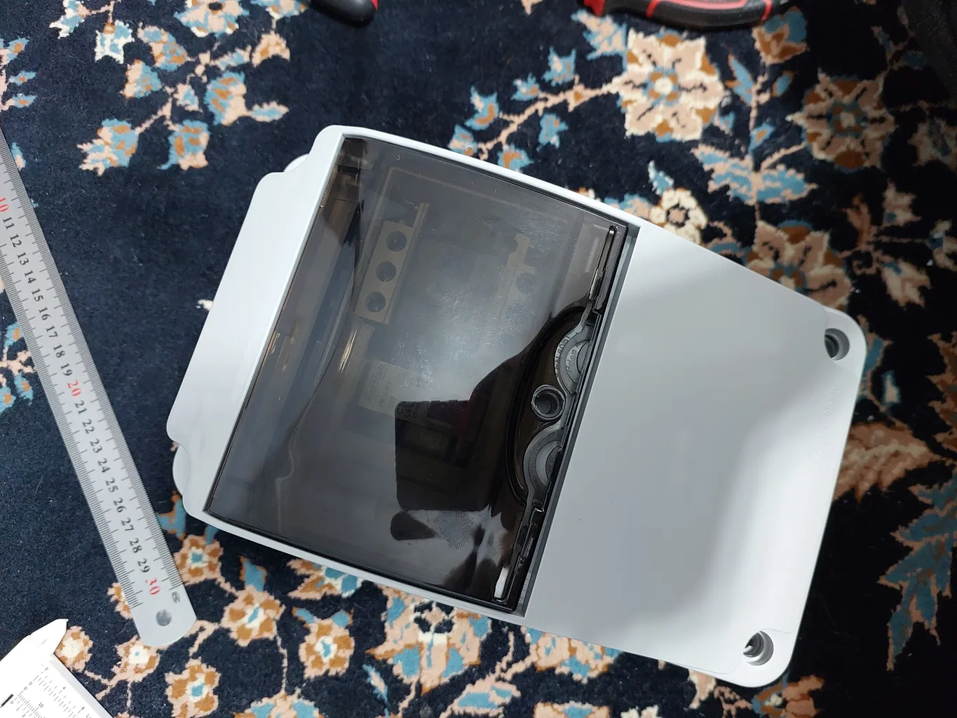 سلام. من این جعبه تقسیم روکار و بعنوان تابلو استفاده کردم چون هم اندازش مناسب بود هم بدنه محکم ک مقاوم و خوش ساختی داره. داخلش کلید سلکتور سه حالته ۴۰ آمپر دوفاز جا شد و با یکسری قطعات دیگه یک کلید سلکتور برای تغییر بین برق شهری و خروجی برق اینورتر ساختم و زمام قطع برق و روشن کردن اینورتر کلید سلکتور و میچرخونم و براحتی این جابجایی برق انجام میشه. عمق مفید کمی بیش از هفت سامته که دقیقا مناسب کلید سلکتور دوفاز سه حالته برند الکتورکهرباست. در اداممه عکس محصول نهایی رو میزارم