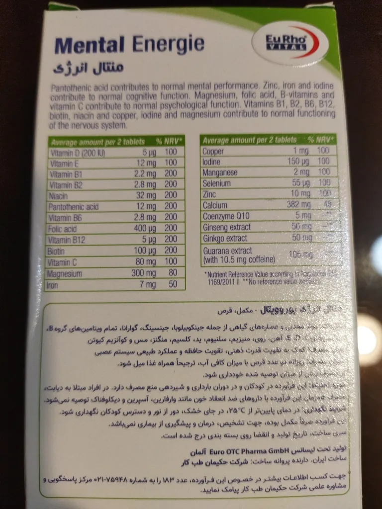نظر و تجربه خرید قرص منتال انرژی یوروویتال بسته 60 عددیدر تاریخ ۱۱ تیر ۱۴۰۴