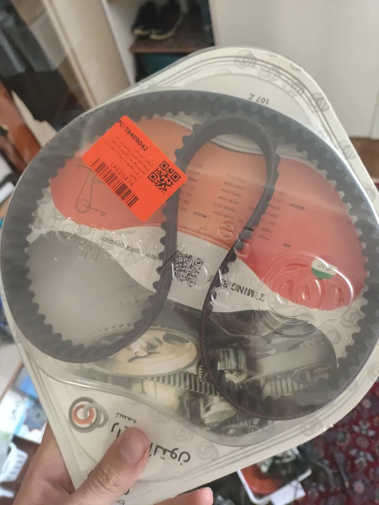تسمه تایم ؛ با سلام تسمه رابرای تیبا2 گرفتم توجعبه نبود وتوی وکیوم بود پشت جعبه فرم گارانتی بود که عکس اون رومیذارم ولی خیلی شرط وشروط دبه داشت که اومیدوارم کاربه اونجاها نرسه
