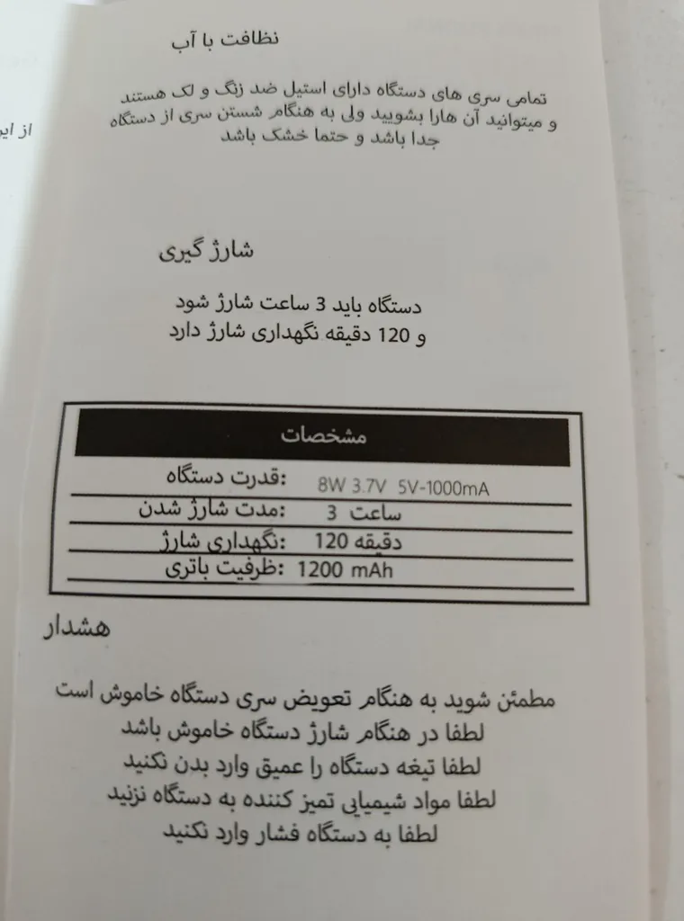 - ⬤ مدت زمان استفاده قبل از نیاز به شارژ مجدد : برخی خریداران به مدت زمان استفاده از دستگاه قبل از نیاز به شارژ مجدد اشاره کردهاند. دستگاههایی که مدت زمان طولانیتری کار میکنند، بیشتر مورد توجه قرار میگیرند و خریداران از این بابت ابراز رضایت میکنند.