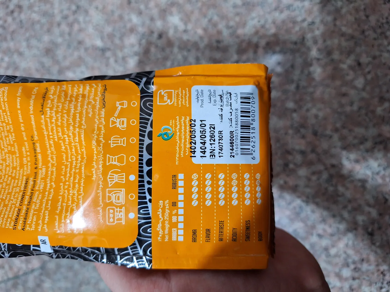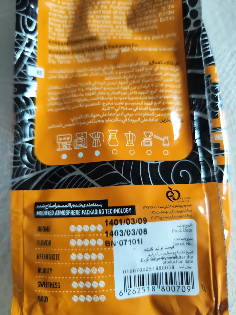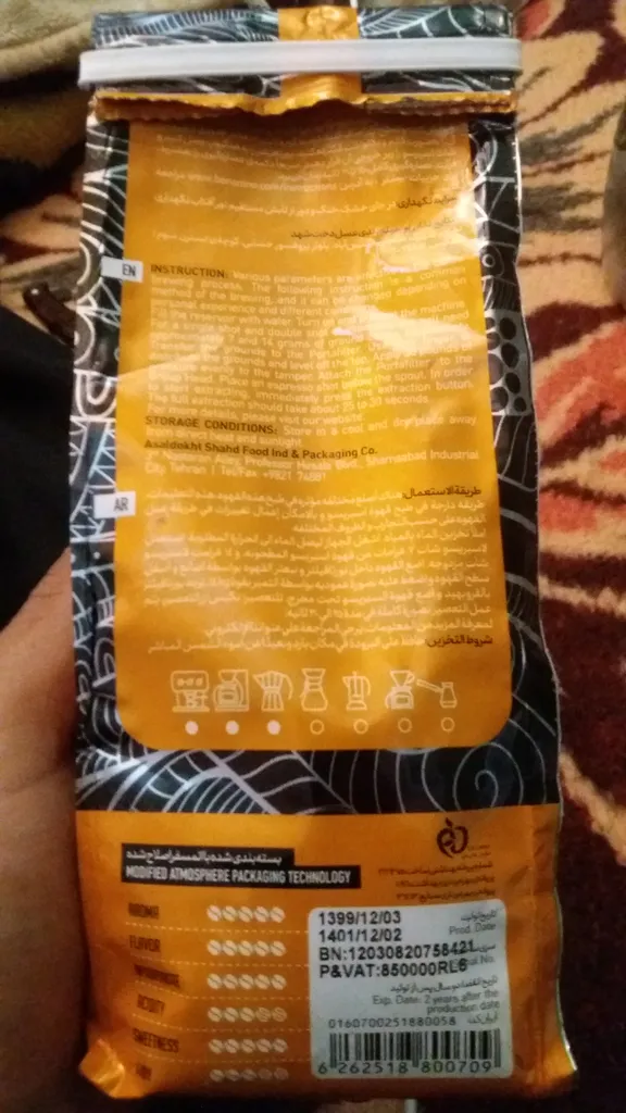 مزه عربیکا نمیداد ؛ این قهوه منو سوپرایز کرد چون اصلا مزه عربیکا نمیداد، ترش نبود و بشدت تلخ بود! تو توضیحات محصول مدیوم رست نوشته ولی دارک بود!