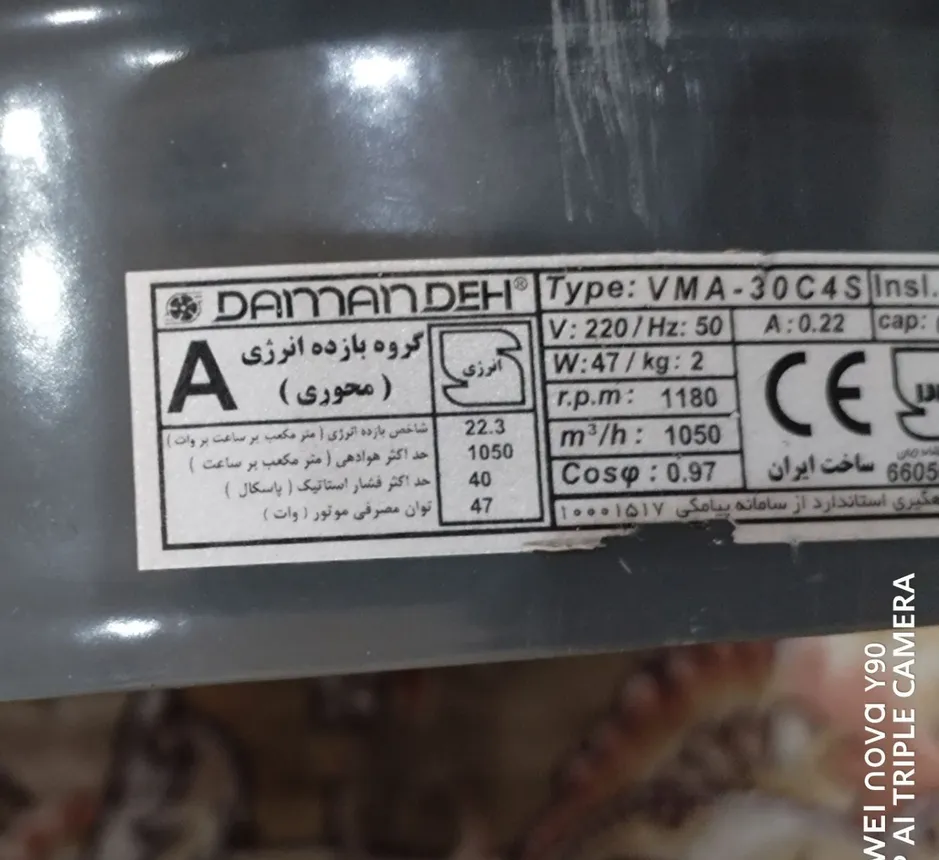 اسماعیل میرزائی بارکوسرائی : هواکش دمنده ؛ نسبت به قیمتش خیلی خوبه کیفیت عالی و گارانتی هم داره که خیلی مهمه و سایز دهنه خروجیش ۱۵ هست و طول عرض و ۲۰ در ۲۰ هست و به دوستان پشنهاد میکنم بخرید
