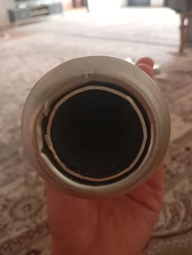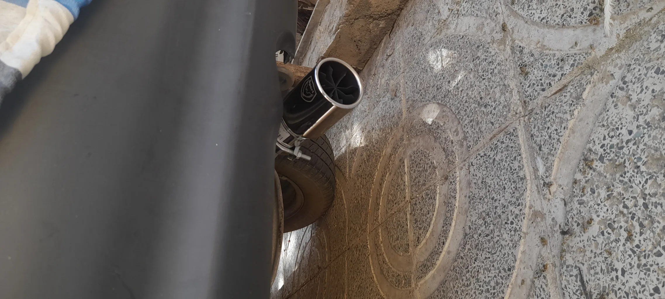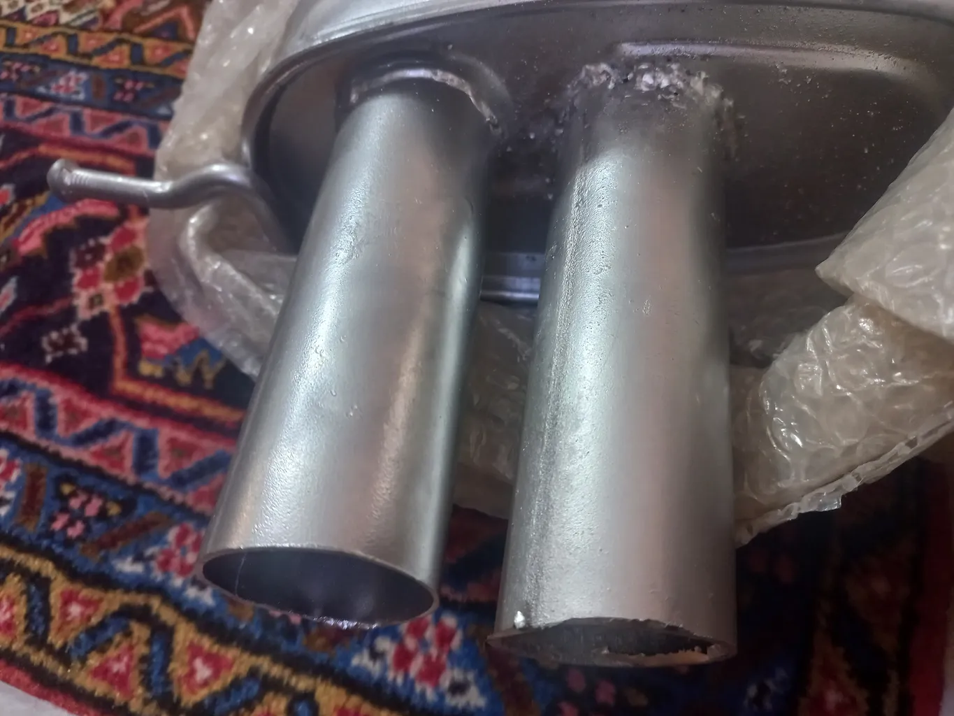 اگزوز رنگش رفته بود و چال چالی شده بود که زیاد مهم نی میره زیر ماشین❌️