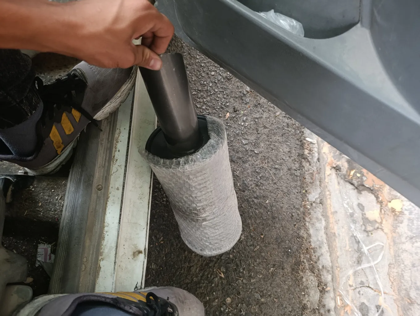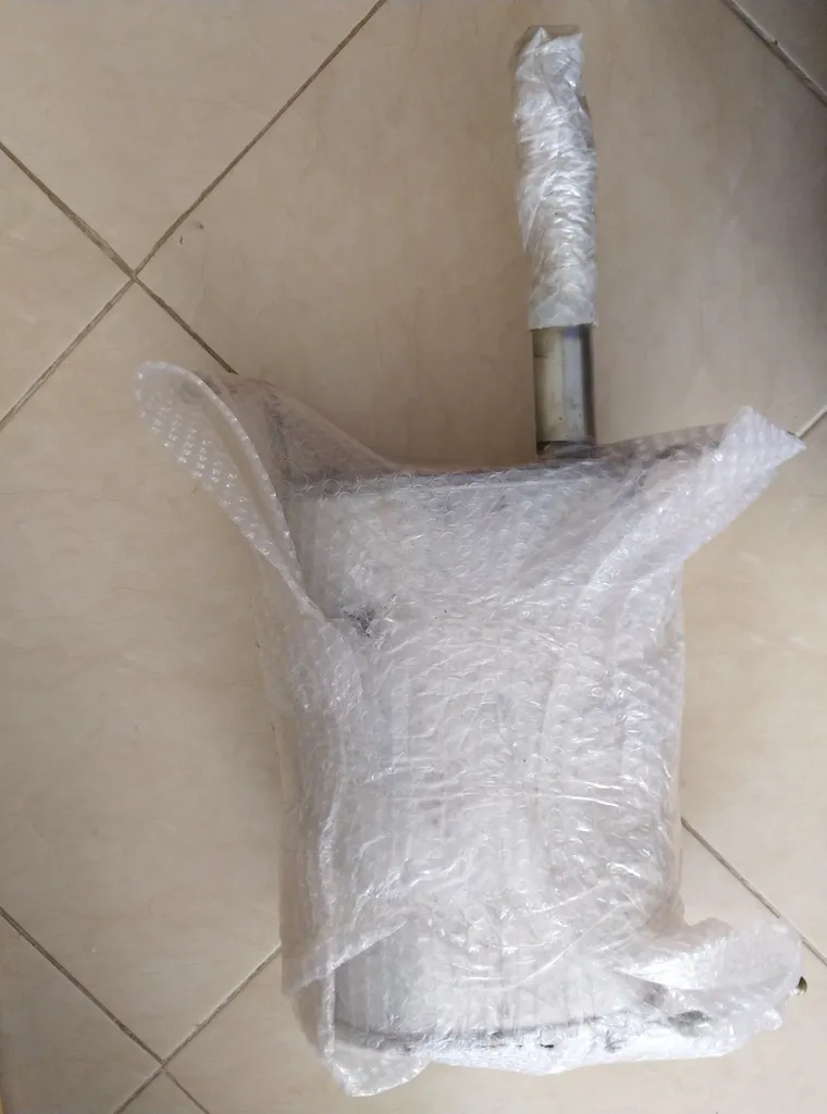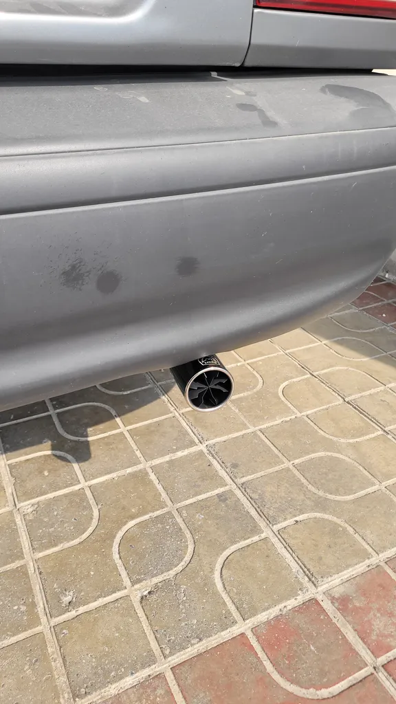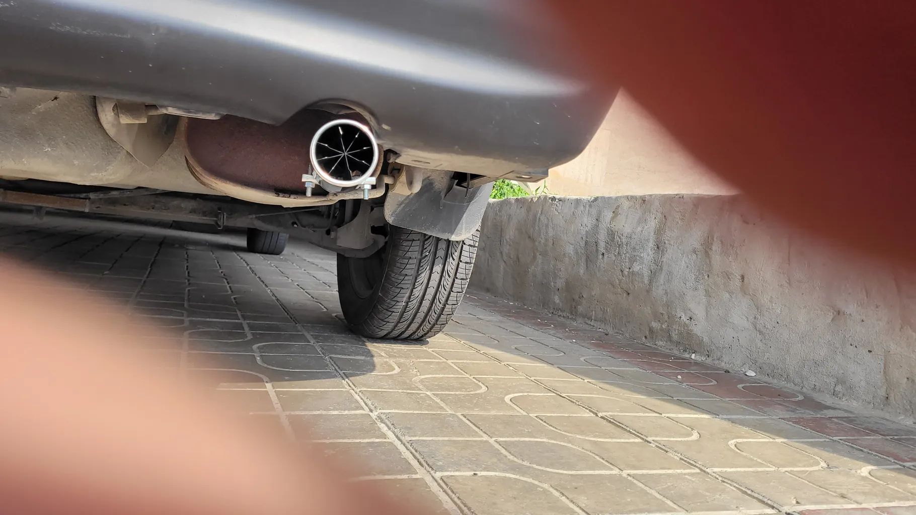 اگزوز رنگش رفته بود و چال چالی شده بود که زیاد مهم نی میره زیر ماشین❌️