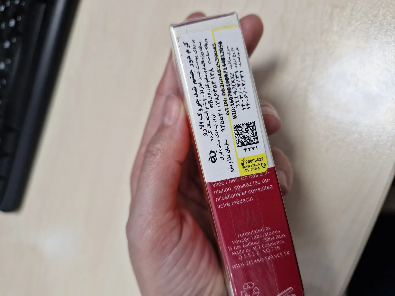 مطمئن نیستم اصل باشه ؛ من به تازگی ضدآفتاب الارو رو خریدم راضی هستم، بخاطر همین کرم دور چشم رو هم سفارش دادم، اما مطمئن نیستم که این اصل باشه چون روی ضدآفتابش ساخت فرانسه درج شده همچنین روی همین کرم داخل عکس ساخت فرانسه هست، اما کرمی که به دست من رسید خیر، لطفاً اگه کسی اطلاع داره راهنمایی کنید