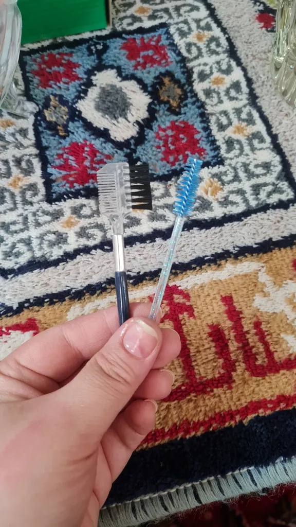 پوران ریاضی پور : شانه ابرو و برس ریمل مدل PRO ؛ البته نسبت به قیمتش عالیه ولی هنوز استفاده نشده جدا شد که عکسشو گذاشتم. ولی خوب با چسب درستش می کنم