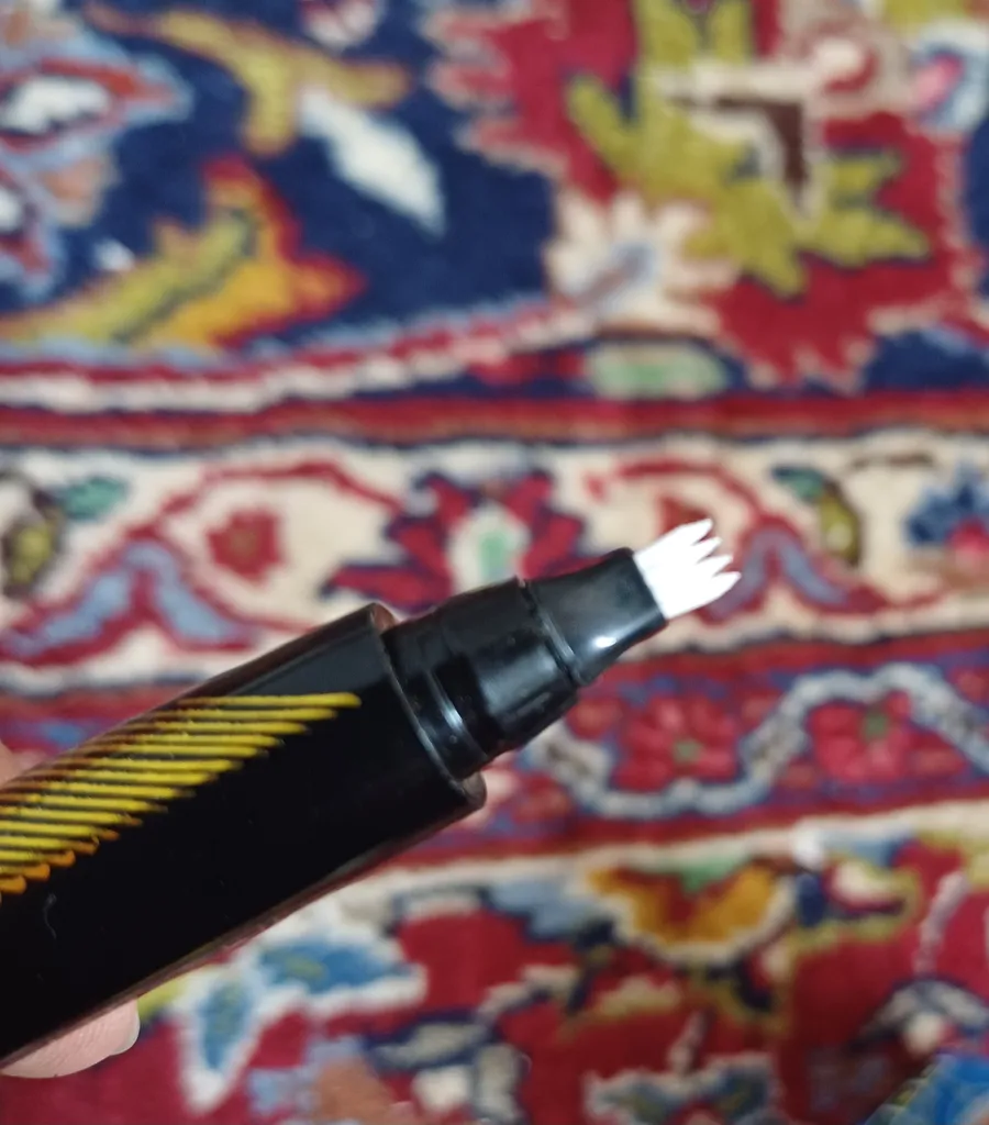 خیلی خوبه حتما امتحان کنید. رنگش قهوه ای تیره هست و پخش نمیشه، به راحتی هم پاک نمیشه. عکس گذاشتم ببینید اگه زیاد فشار بدین رو پوستتون هاشوری نمیشه باید ماژیک رو خیلی نرم رو پوستتون بکشید در جهت موهای ابرو