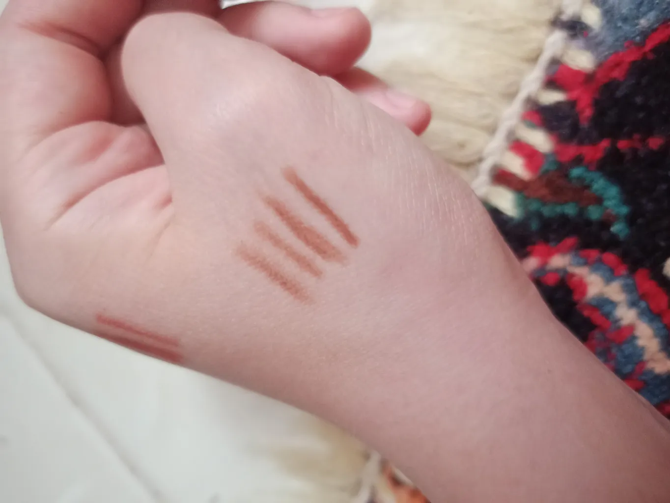 ندا نیریزی : دوستان از همه نظر عالی بود فقط رنگ قهوه ای سوخته نیست قهوه ای که قرمز داره نه اینکه ایروها رو قرمز کنه ولی قهوه ای رو به مشکی نیست ، تو ابرو که میزنی قهوه ای خوشرنگی هست و من که قبلا مداد قهوه ای سوخته میزدم الان میتونم اینم استفاده کنم و فرق خیلی زیادی نمیکنه ولی میزان چربی مداد عالی و اندازه ش هم عالی ،عکس میزارم برای تفاوت دوررنگ مداد قبلیم و جدیده