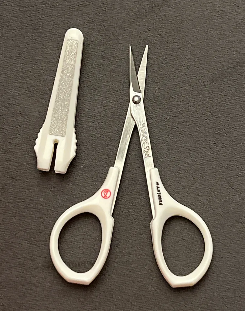 در واقع روش نوشته قیچی مانیکور و یک سوهان هم روی درش داره ولی من به عنوان قیچی ابرو خریدم خیلی تیز و خوبه اگر یک قیچی نیاز دارید پیشنهاد میکنم یک دونه بخرید و خوبش و بخرید حتی به درد استفاده ی حرفه ای میخوره و اینکه محافظ داره هم خیلی خوبه