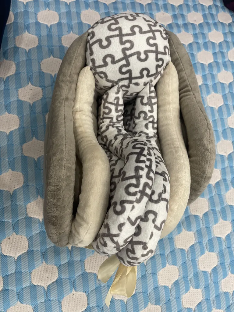 ولی اگه همراهش یک بالشت کوچیک فرم دهی سر از جنس و طرح خودش می داشت بهتر بود و یکم سرش رو میبرد بالاتر.که من از بالشت های فرم دهی داشتم استفاده کردم.