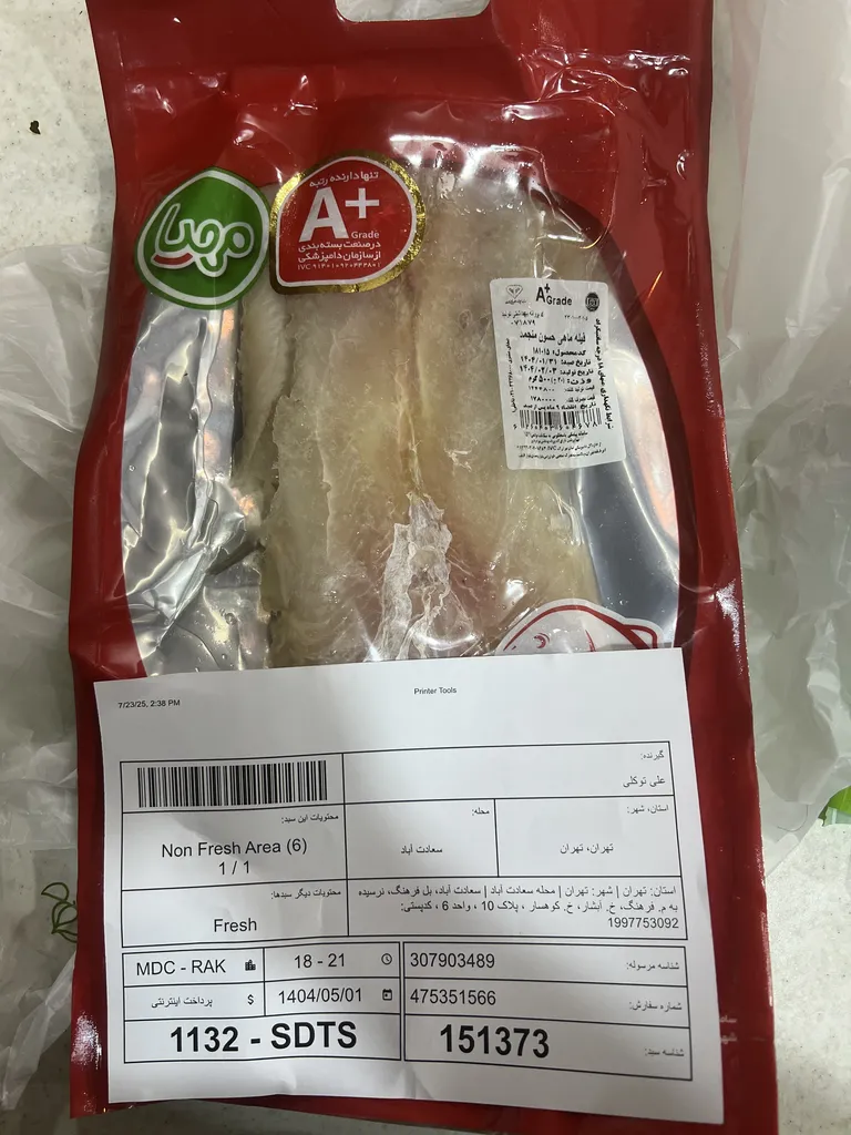 توصیه می کنم ؛ من در شگفت انگیز خریداری کردم. در نتیجه قیمتش برام خوب بود. دو قطعه ماهی بزرگ و کوشتی و ضخیم ارسال شده بود. که من به قطعات کوچکتر تقسیمش کردم. برای دو نفر پرخوراک و سه نفر با خوراک متوسط, کافیه. یه کوچولو , خیلی خیلی کم, انجماد یکی از بسته ها کم شده بود. ولی یخش آب نشده بود. ماهی خوش طعم و خوشبو بود. و کاملا به موقع تحویل شد. رفتار مامور تحویل کالا بسیار مودبانه و توام با احترام بود.
