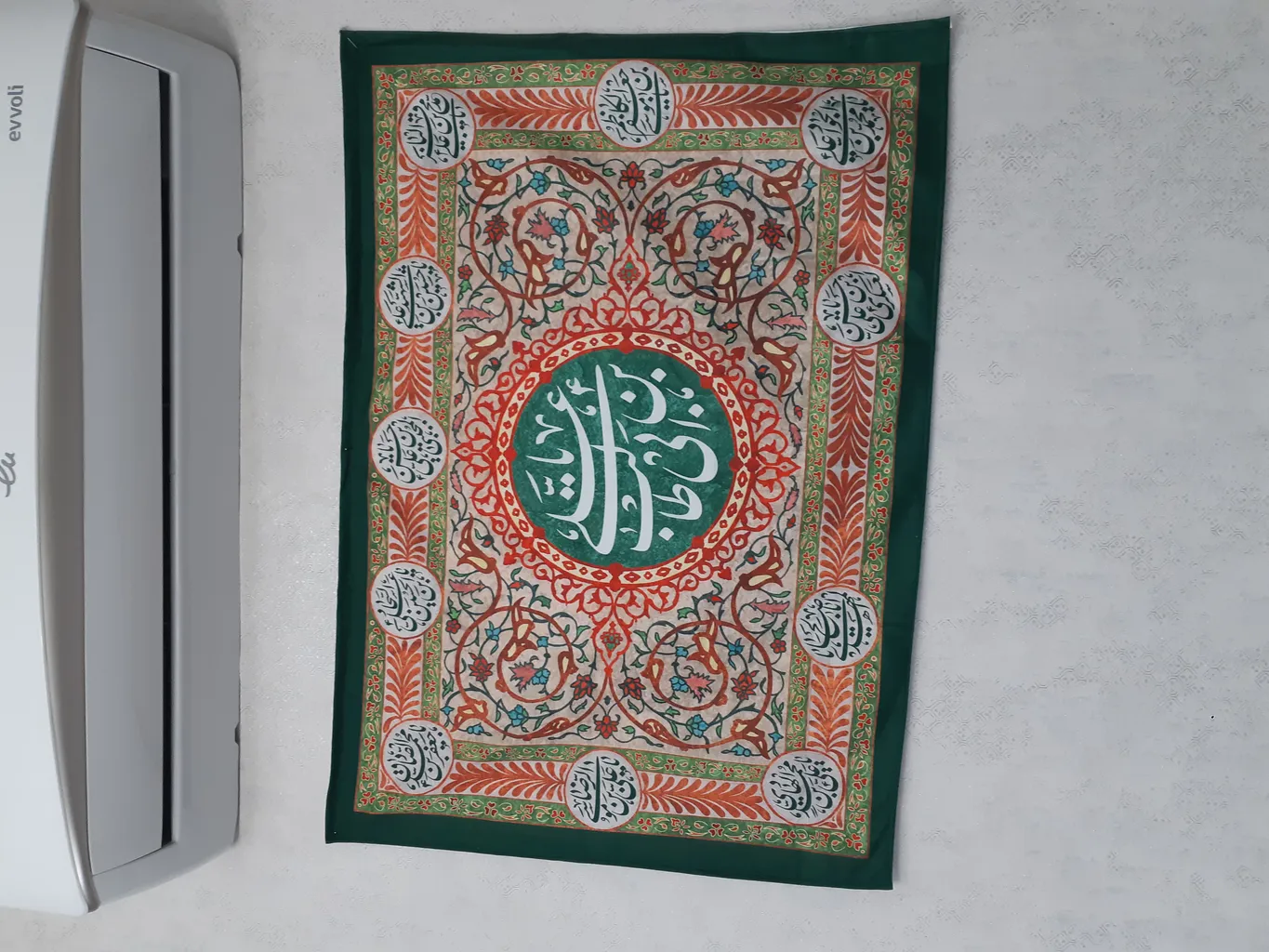 سلام بر حسین(ع) ؛ اول تشکر میکنم از تولید کننده. جزو بهترین خریدهای من از دیجی کالا بود. امروز که ششم محرم هست به دستم رسید، نصبش کردم روی کتابخونه. تا پایان ماه صفر میذارم بمونه. جنسش خوبه. چاپ عالی. فقط یه جاهایی دوختش طوری هست که از کناره ها، جمع شده، کشیده شده.