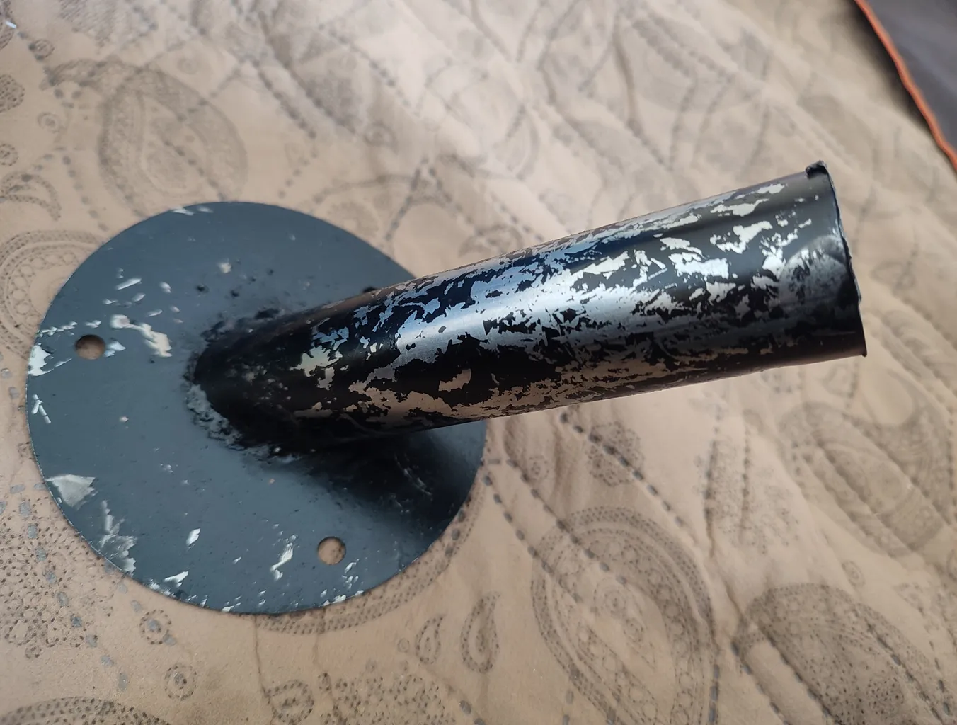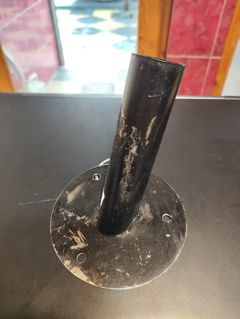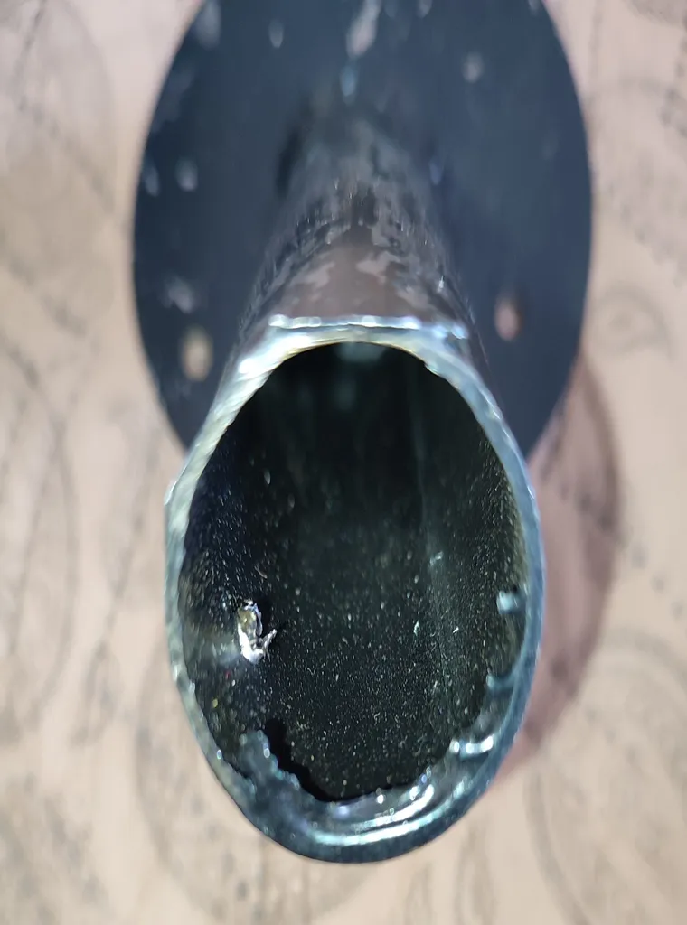 داخل لوله پر پلیسه، رنگ پوست پوست شده، پایه سمت دیوار کج و کوله.