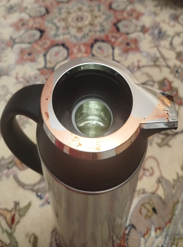 کلا دو بار آب جوش ریختیم که بعد از دوبار رنگ قسمت نقره ایش داره می ریزه.