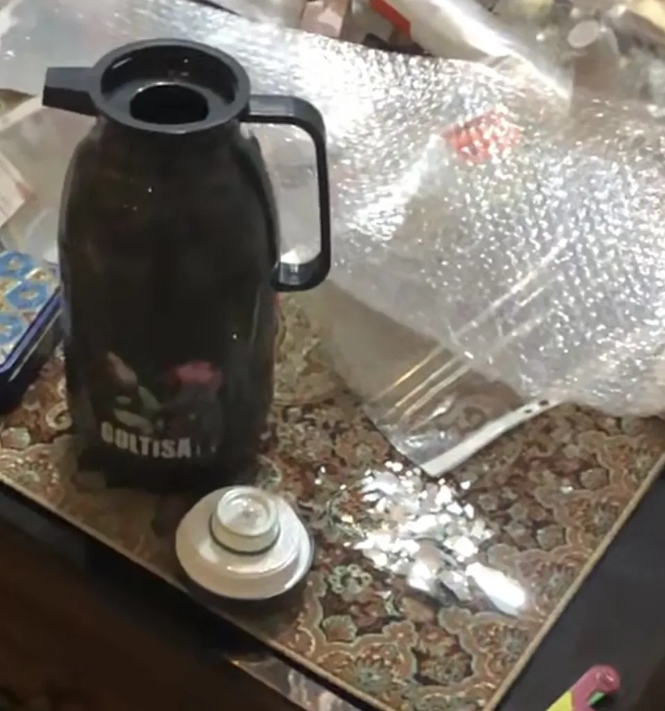 شیشه فلاسک ی شیشه معمولی بود.برعکس داخل عکس که شیشه قرمز داشت