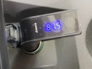 خروجی شارژ 1 امپر واقعی هست و نه 3 امپر عکسش گذاشتم ولتاژ باتری ماشین هم نشون میده اینکه نویز داشته باشه یا نه بیشتر به رادیوی ماشین بستگی داره و با تغییر موج ممکنه نتیجه بهتری بگیرید