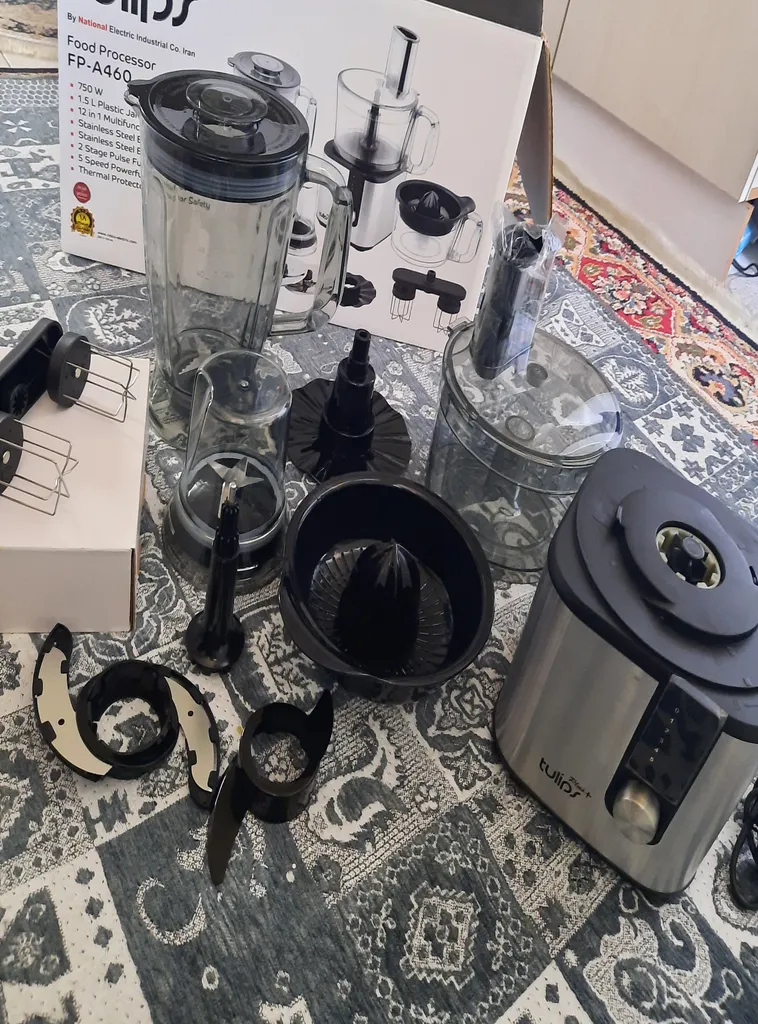- ⬤ تیغههای مختلف : تیغههای مختلف برای خرد کردن، رنده کردن و مخلوط کردن مواد غذایی طراحی شدهاند. خریداران به تنوع تیغهها به عنوان یک مزیت بزرگ اشاره کردهاند و از این که میتوانند با یک دستگاه چندین نوع تیغه را استفاده کنند، راضی هستند. این تنوع به آنها این امکان را میدهد که بسته به نوع غذایی که تهیه میکنند، تیغه مناسب را انتخاب کنند. با این حال، برخی خریداران به کیفیت پایین برخی تیغهها و احتمال کند شدن آنها پس از چند بار استفاده اشاره کردهاند.