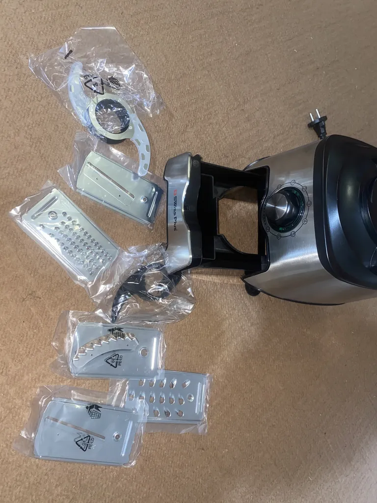- ⬤ تیغههای مختلف : تیغههای مختلف برای خرد کردن، رنده کردن و مخلوط کردن مواد غذایی طراحی شدهاند. خریداران به تنوع تیغهها به عنوان یک مزیت بزرگ اشاره کردهاند و از این که میتوانند با یک دستگاه چندین نوع تیغه را استفاده کنند، راضی هستند. این تنوع به آنها این امکان را میدهد که بسته به نوع غذایی که تهیه میکنند، تیغه مناسب را انتخاب کنند. با این حال، برخی خریداران به کیفیت پایین برخی تیغهها و احتمال کند شدن آنها پس از چند بار استفاده اشاره کردهاند.