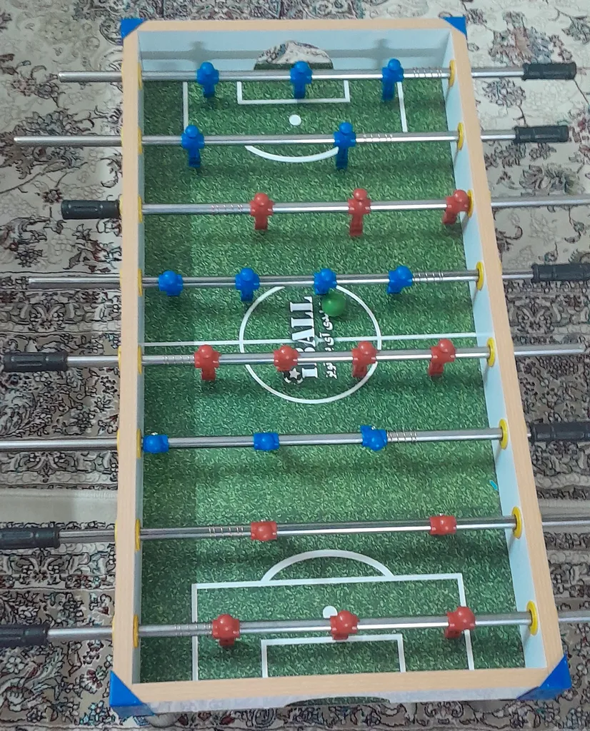 - ⬤ آدمکهای اضافی : آدمکها یا بازیکنان فوتبال دستی معمولاً از جنس پلاستیک سخت ساخته میشوند و در انواع مختلفی موجود هستند. خریداران به کیفیت و استحکام آدمکها توجه دارند و برخی از آنها به این نکته اشاره کردهاند که آدمکهای با کیفیتتر باعث بهبود عملکرد بازی میشوند. همچنین، برخی از خریداران به این موضوع اشاره کردهاند که تعداد کافی آدمکها در هر سمت میتواند به تعادل بازی کمک کند و تجربه بهتری را فراهم کند.