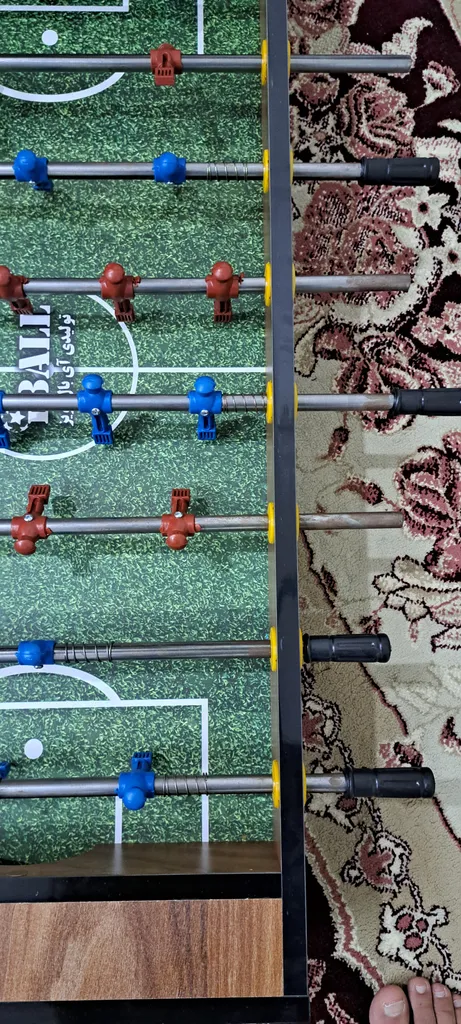 - ⬤ پایههای قابل تنظیم : پایههای فوتبال دستی معمولاً از جنس فلز یا پلاستیک ساخته میشوند و قابلیت تنظیم ارتفاع دارند. خریداران به این ویژگی توجه دارند و برخی از آنها به این نکته اشاره کردهاند که پایههای قابل تنظیم میتوانند به راحتی برای افراد با قدهای مختلف تنظیم شوند. همچنین، برخی از خریداران به این موضوع اشاره کردهاند که پایههای ضعیف ممکن است در حین بازی دچار مشکل شوند و نیاز به تعویض داشته باشند.