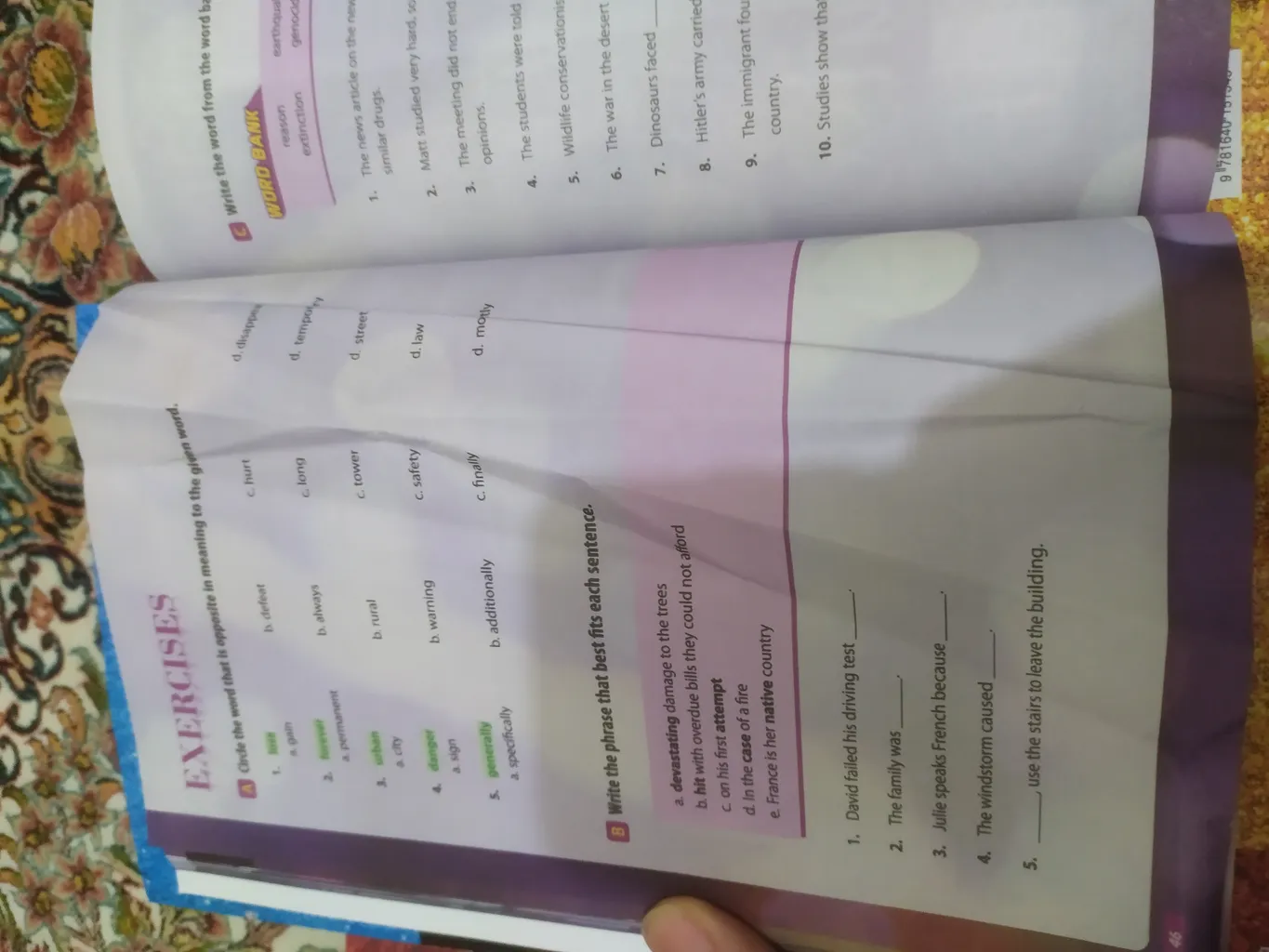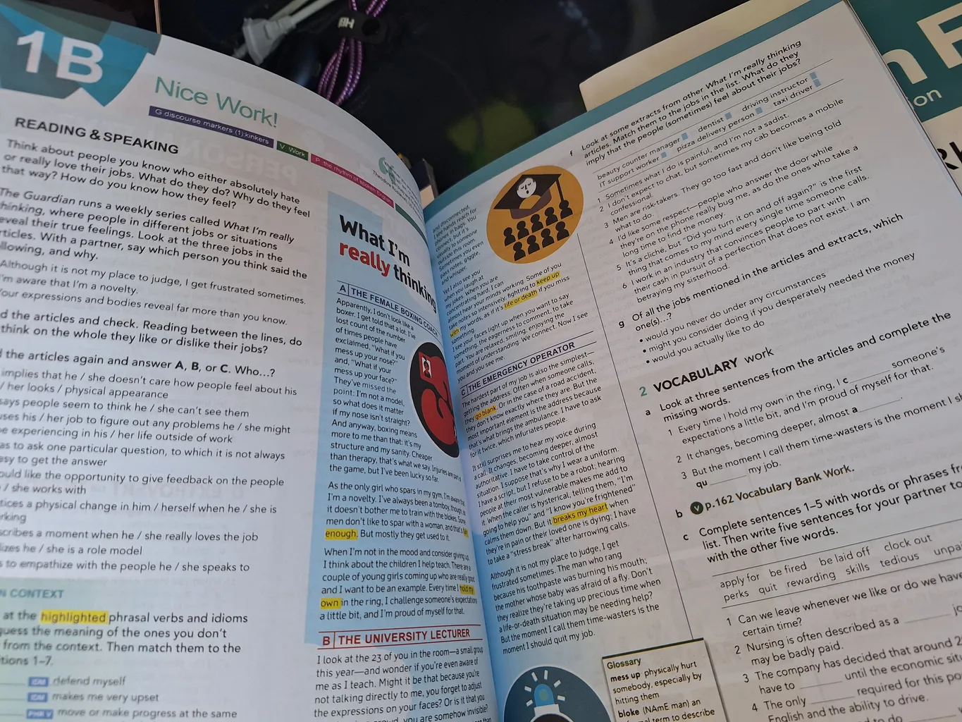 در ادامه یک سری پرسش های دو گذینه ایی و وصل کردنی و... از لغات همان درس اورده شده در پایان هم یک ریدینگ هست که لغات درس رو پوشش میده و در انتهای ریدینگ سوالات درک مطلب اورده شده