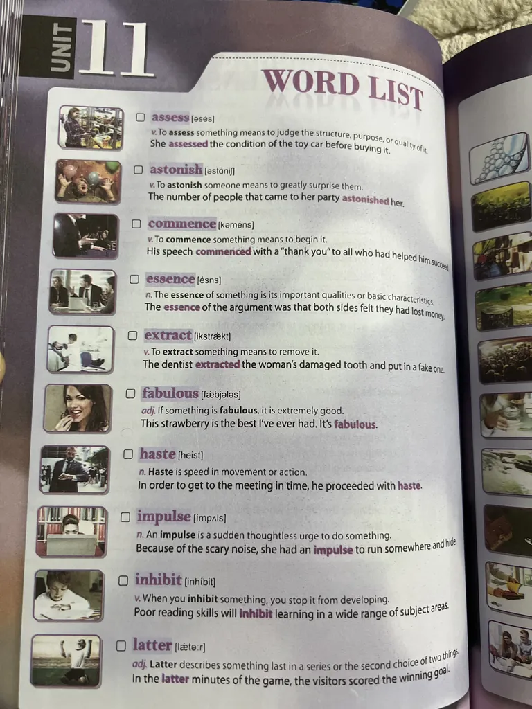 هر درس حدود 20 لغت داره هر لغت با یک جمله تعریف شده و یک مثال برای اون نوشته شده
